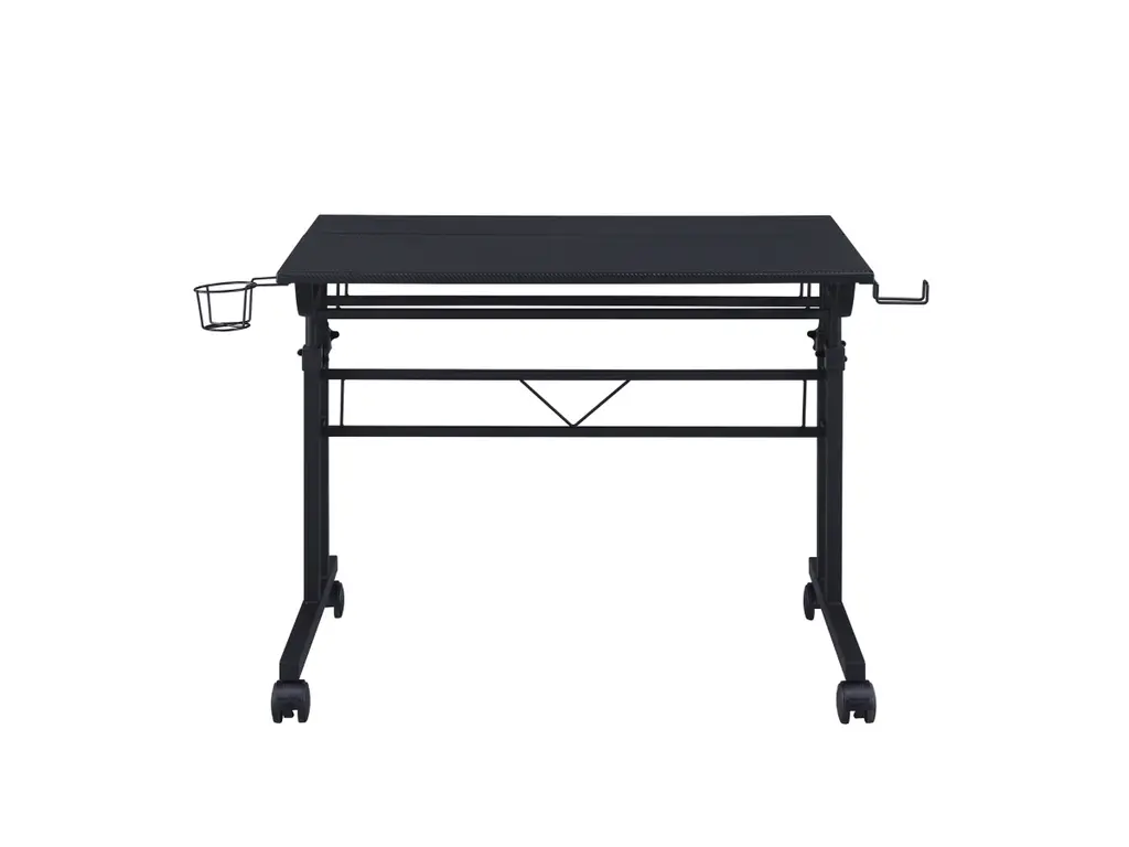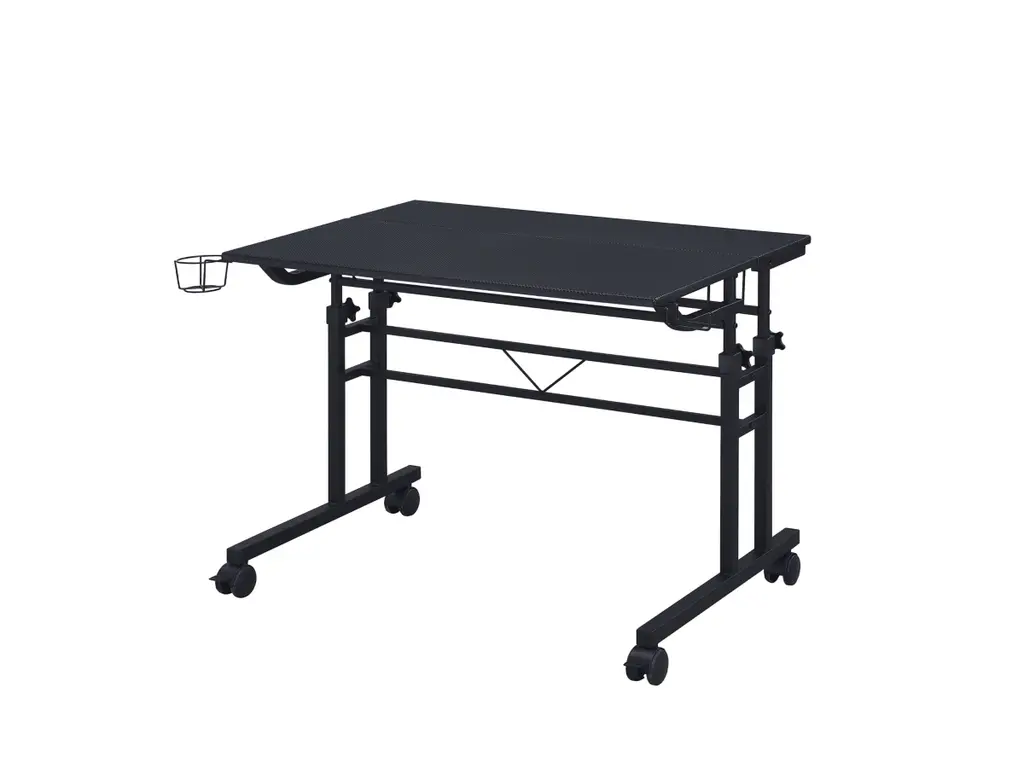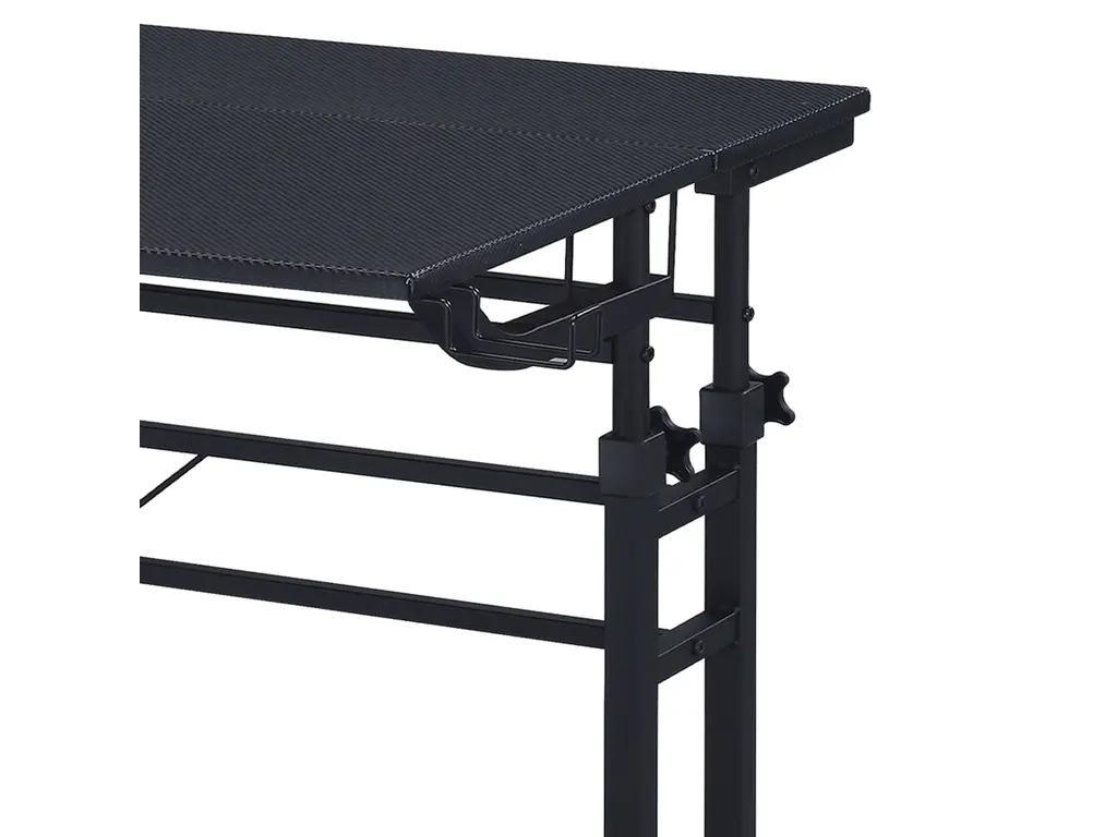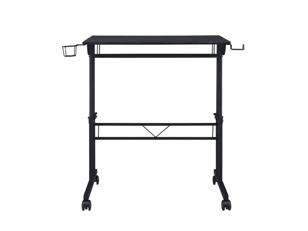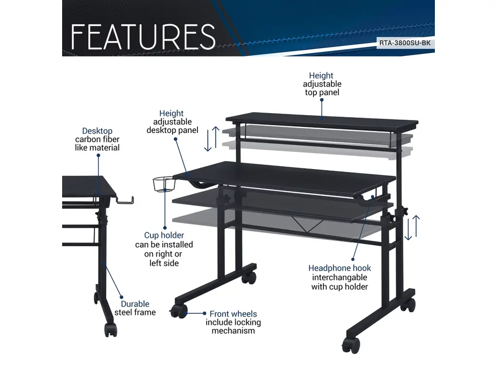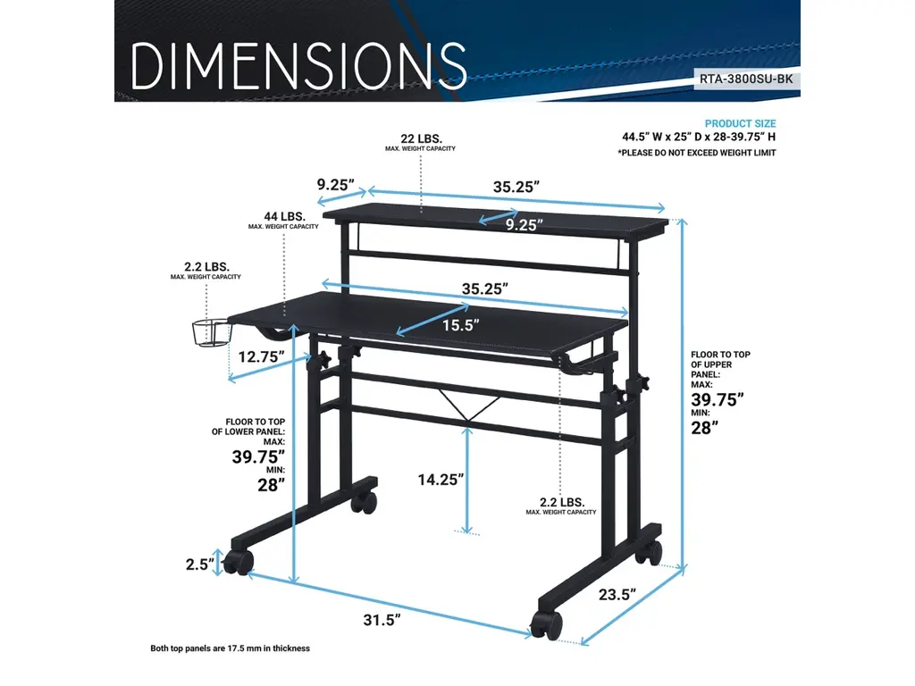 Mix industrial and modern styles together with this Techni Mobili Rolling and Adjustable Writing Desk. This desk is perfect for home-office spaces with its footprint and offers option of 2 separate desktops independent levels with ample space that includes adjustable height mechanism. The fiber-like texture tabletop surface and powder-coated metal structure that give this desk a sturdy build, while the front loc wheels mechanism let you swiftly glide in a home office space. It comes with integrated cup and headphone holder that can be easily installed on right and left. It is easy to assemble, and comes with 5-year limited warranty.