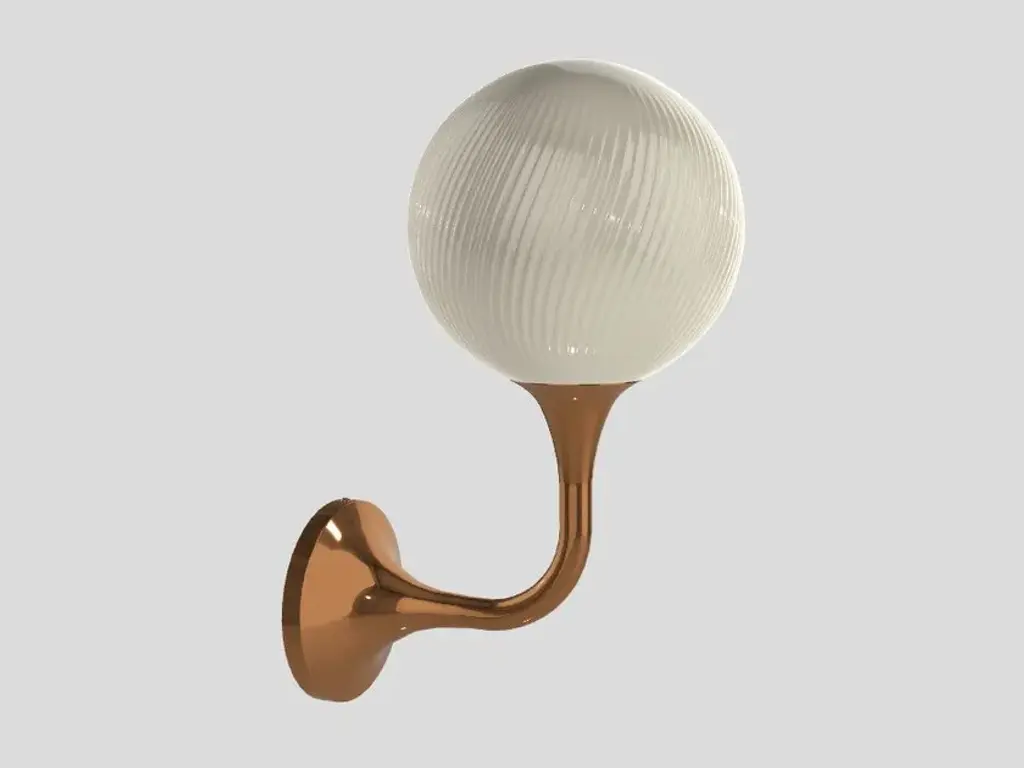 Tee A1 20 is a table lamp with coppered gold galvanized metal frame and amber Murano triplex glass shade with spiral decoration.Technical featuresTee A1 201×E14×15 W MAX (NOT INCL.)*USA 1×E12×40 W MAX (NOT INCL.)** BULB MAX Ø 37 MM L 70 MMCEETLCCCCB SCHEMETee is the result of the search for the meeting point between geometric rigour and class, aesthetically marked by the curved line. The luminous glass spheres, which enhance the preciousness and enhance the light, are delicately animated by an incision of parallel spiral lines, a delicate decoration that seems to give the globes a slow rotation, like a dance made up of signs of light. Tubular metal stems with a round cross-section, with coppered gold galvanic finishing, at the end of which a truncated metal cone holds a sphere. An organic shape recalling the delicacy of the calla lily flower, alone or in bunches, depending on the type of Tee, which varies from suspended ceiling lights to floor, table, wall and ground versions. The aim was to create a family that is extremely flexible in the way it can be used and modular in its configurations, so that it can meet the lighting needs of any architectural space. Architectural space. Traditional lighting.