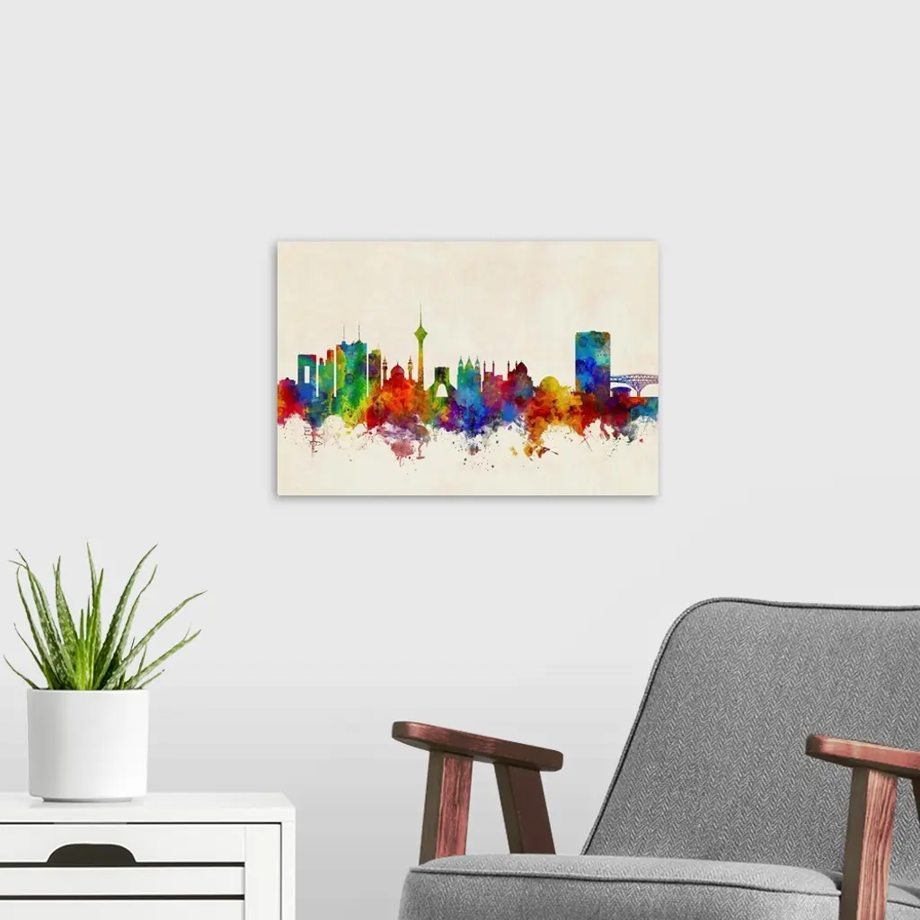 Watercolor art print of the skyline of Tehran, Iran