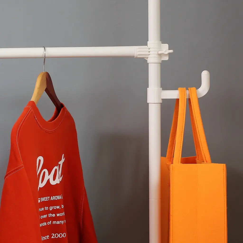 Telescopic Garment Rack, Heavy Duty Ceiling Hanging Rail, 31-47in Wide Adjustable, 120 Kilogram Loading, Reach Hook Included - White