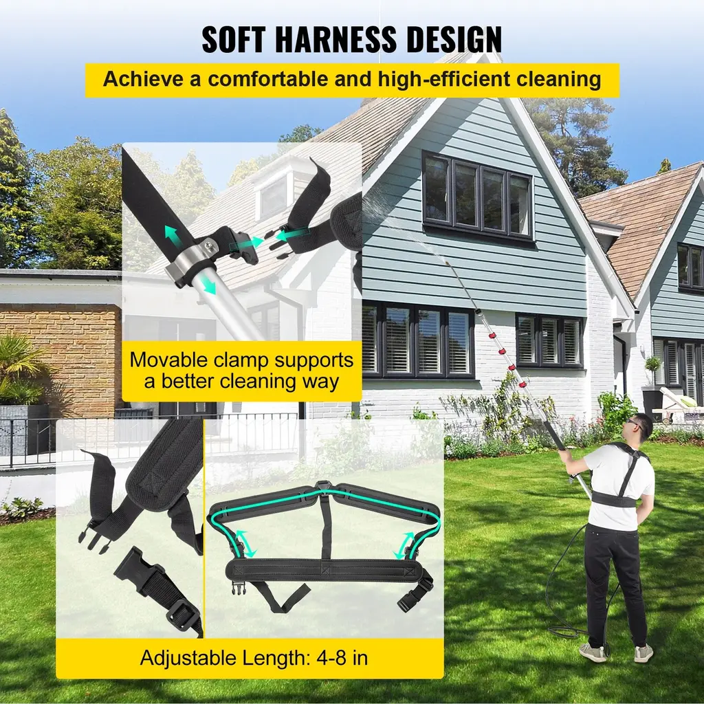 Premium Washer Wand: Max. Water Flow: 9GPM; Max. Pressure: 4000PSI. Ideal for high areas, our telescoping extension wand can reach up to 18/20ft. Made of lightweight aluminum alloy, durable 430 stainless steel, and brass material, the product features a long last using life. Adjustable Length: The height of this telescoping pressure washer wand is ranged from 5 to 18/20ft, making your outdoor cleaning labor-saving. It is effortless to adjust the length because you just need to loosen or fasten the wand with no trouble. Lockable design for triggers also saves your energy. Good Compatibility: 15-degree extension wand makes hard-to-reach places like gutter and roof corners easy to clean. We provide a 1/4" quick connector for the outlet. If needed, you should prepare the M22-14/15MM adapters by yourself. Universal works with electric pressure washers up to 4000PSI. (The 3/8'' quick connector is NOT INCLUDED.) 5 Spray Nozzle Tips: Bonus 5 different sizes of water spray nozzles: 0°, 15°, 25°, 40°, and 60°for soap using. Meet your washing needs in various situations, such as roofs, cars, fences, walls, windows, decks, etc. Adjustable Support Harness: For your better use, we give you a double strap to support the pressure washer telescoping wand, which is convenient for your long-time cleaning of large areas. The strap can be adjusted within 3.9-7.9"/4-8" for your comfortable cleaning. Package Content 1 x Telescoping Wand 1 x 15°Extension Rod 1 x Strap Belt 5 x Spray Nozzles 1 x 1/4" Quick Connector