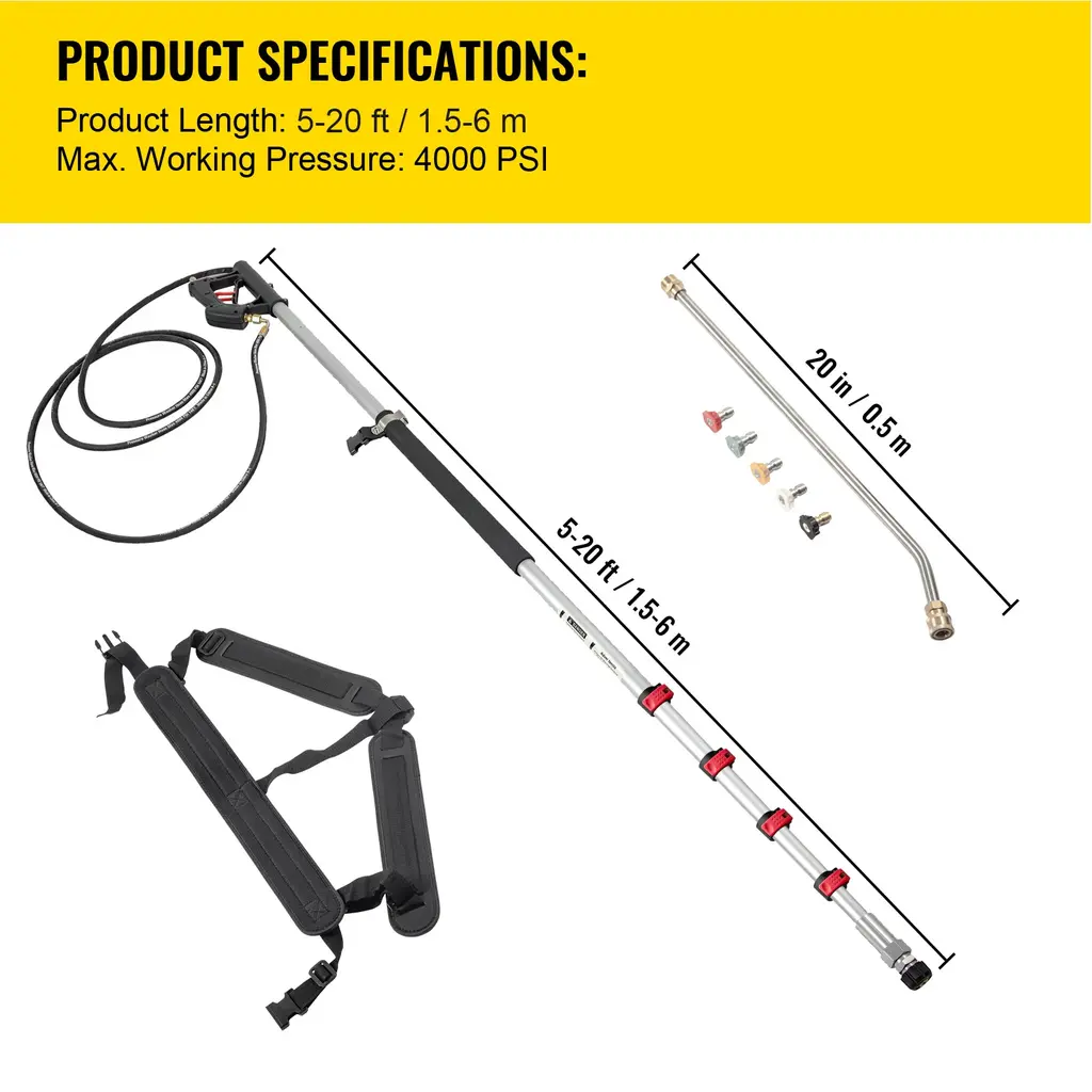 Telescoping Pressure Washer Wand - 20ft 4-8"