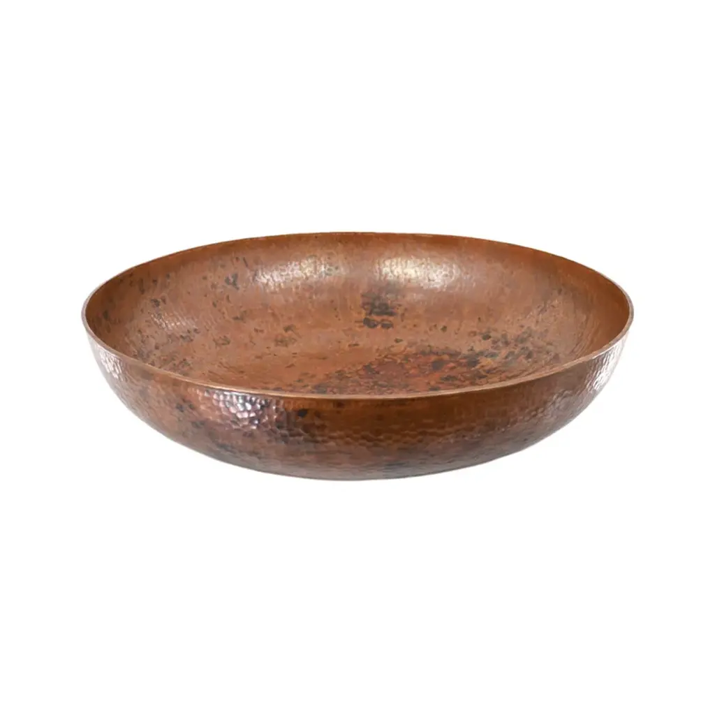 A stand-out in low-profile bathroom sinks, the Sonata Petit vessel sink deserves top billing in smaller baths and powder rooms everywhere. From the acclaimed Collection, Sonata Petit boasts an incredible hammered copper texture. Sonata Petit copper bathroom sink is artisan crafted; forged of high-quality recycled copper. It takes thousands of hammer strikes to create this one-of-a-kind, functional work of art.