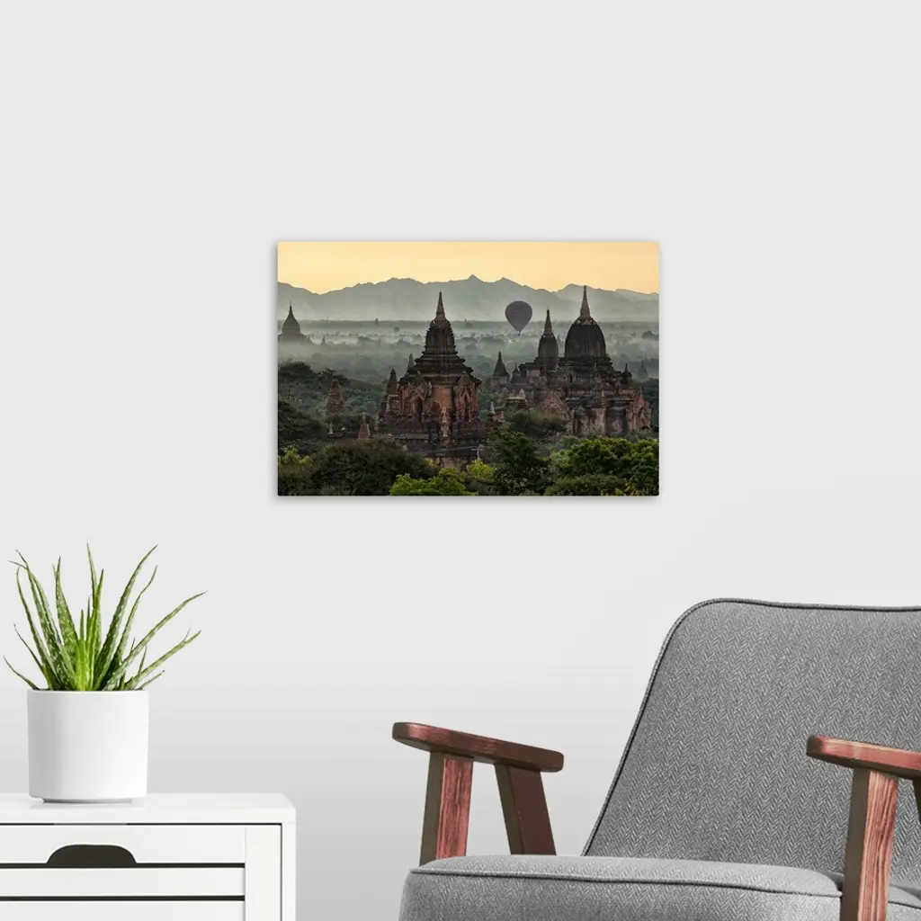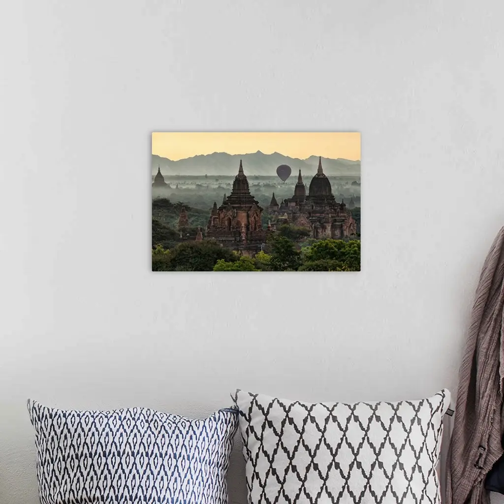 Temples of Bagan, Burma at sunrise wall art for home and office decor. Discover canvas art prints, photos, mural, big canvas art and framed wall art in GreatBigCanvas.com's varied collections.
