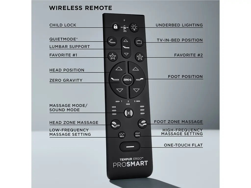 The all-new TEMPUR-Ergo® ProSmart™ Base powered by Sleeptracker-AI® is an innovative sleep solution that can detect snoring and automatically respond and may help reduce it* so you can get undisturbed rest. The innovative base also includes features like soothing massage combinations to help relax your mind and body for deep sleep. For personalized comfort, pair two Twin XL bases with two Twin XL mattresses for a Split King with full head & foot customization—or combine two Twin XL bases with a Split-Head King mattress for head-only customization. Plus, through an easy-to-use app, you can receive personalized sleep coaching with expert insights & analytics to track and improve your sleep quality over time. Protect your adjustable base with FirmCare Protection Plan.*Bed raises once approximately 12 degrees in response to snoring. This may reduce snoring in otherwise healthy individuals who snore due to body positioning.