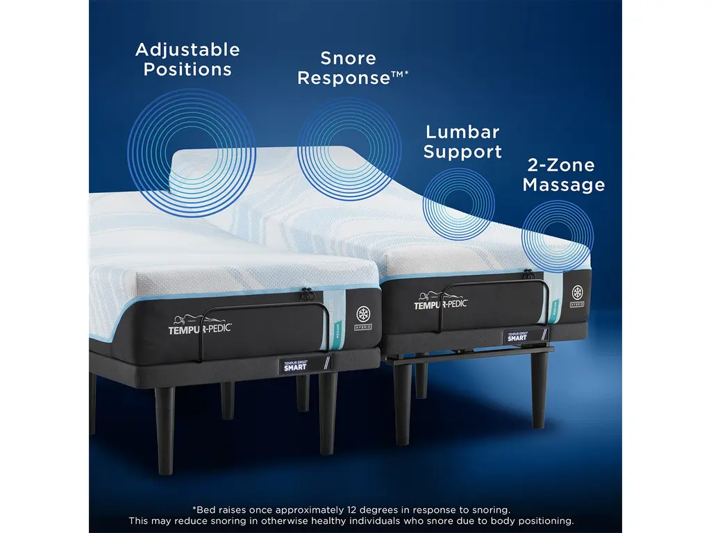 The all-new TEMPUR-Ergo® Smart Base powered by Sleeptracker-AI® gives you an innovative sleep solution that can detect snoring and automatically respond, which may help reduce it,* so you don’t have to be disturbed during the night. For personalized comfort, pair two Twin XL bases with two Twin XL mattresses for a Split King with full head & foot customization—or combine two Twin XL bases with a Split-Head King mattress for head-only customization. Plus, through an easy-to-use app, you can receive personalized sleep coaching with insights and expert-level analytics to help track and improve your sleep quality over time. Protect your adjustable base with FirmCare Protection Plan. *Bed raises once approximately 12 degrees in response to snoring. This may reduce snoring in otherwise healthy individuals who snore due to body positioning.