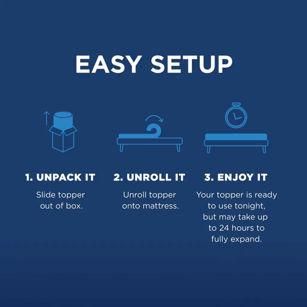 Power your sleep with the comfort you deserve with the Tempur-Pedic TEMPUR-Cloud® Mattress Topper. This 2" thick Foam mattress topper instantly improves the comfort of any mattress, evenly absorbing the force of your body and its pressure points to reduce tossing and turning so you can wake up feeling refreshed and ready to start the day. Featuring signature pressure-relieving TEMPUR® material, the Foam topper effortlessly adapts to your unique shape, weight, and temperature to offer the same pressure-relieving comfort and support found in our mattresses. It's designed to reduce motion transfer so you can rest undisturbed even when you're sleeping beside your partner, kids, or pets, helping everyone get the blissful night of sleep they deserve. For increased comfort and durability, the supportive mattress topper is protected by an ultra-soft, hypoallergenic cover featuring Safe-Guard Technology, and the cover can be removed and machine washed as needed for easy cleaning. This medium-firm mattress topper fits neatly over full size beds, and the included stretch skirt accommodates most mattresses to keep your topper securely in place.