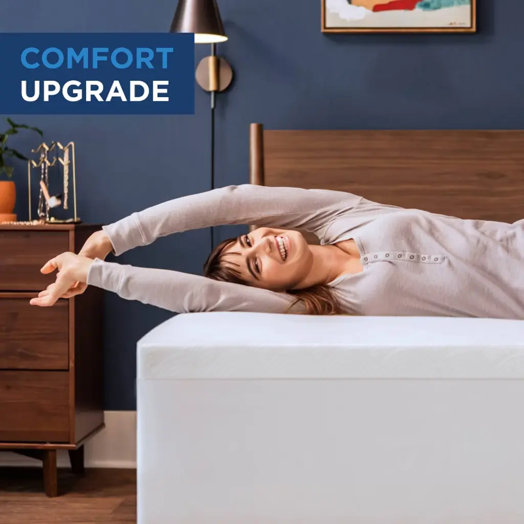 Power your sleep with the comfort you deserve with the Tempur-Pedic TEMPUR-Cloud® Mattress Topper. This 2" thick Foam mattress topper instantly improves the comfort of any mattress, evenly absorbing the force of your body and its pressure points to reduce tossing and turning so you can wake up feeling refreshed and ready to start the day. Featuring signature pressure-relieving TEMPUR® material, the Foam topper effortlessly adapts to your unique shape, weight, and temperature to offer the same pressure-relieving comfort and support found in our mattresses. It's designed to reduce motion transfer so you can rest undisturbed even when you're sleeping beside your partner, kids, or pets, helping everyone get the blissful night of sleep they deserve. For increased comfort and durability, the supportive mattress topper is protected by an ultra-soft, hypoallergenic cover featuring Safe-Guard Technology, and the cover can be removed and machine washed as needed for easy cleaning. This medium-firm mattress topper fits neatly over full size beds, and the included stretch skirt accommodates most mattresses to keep your topper securely in place.