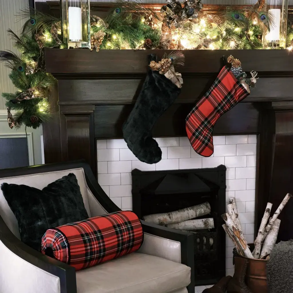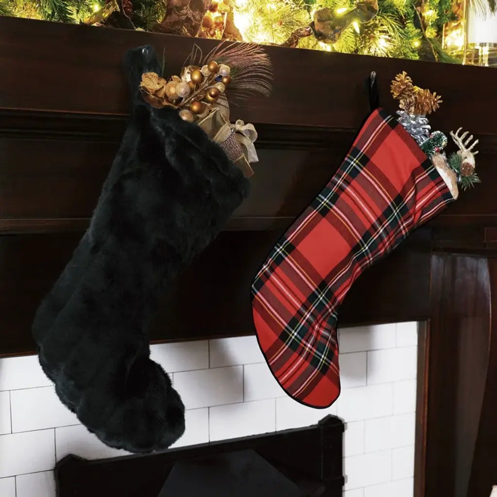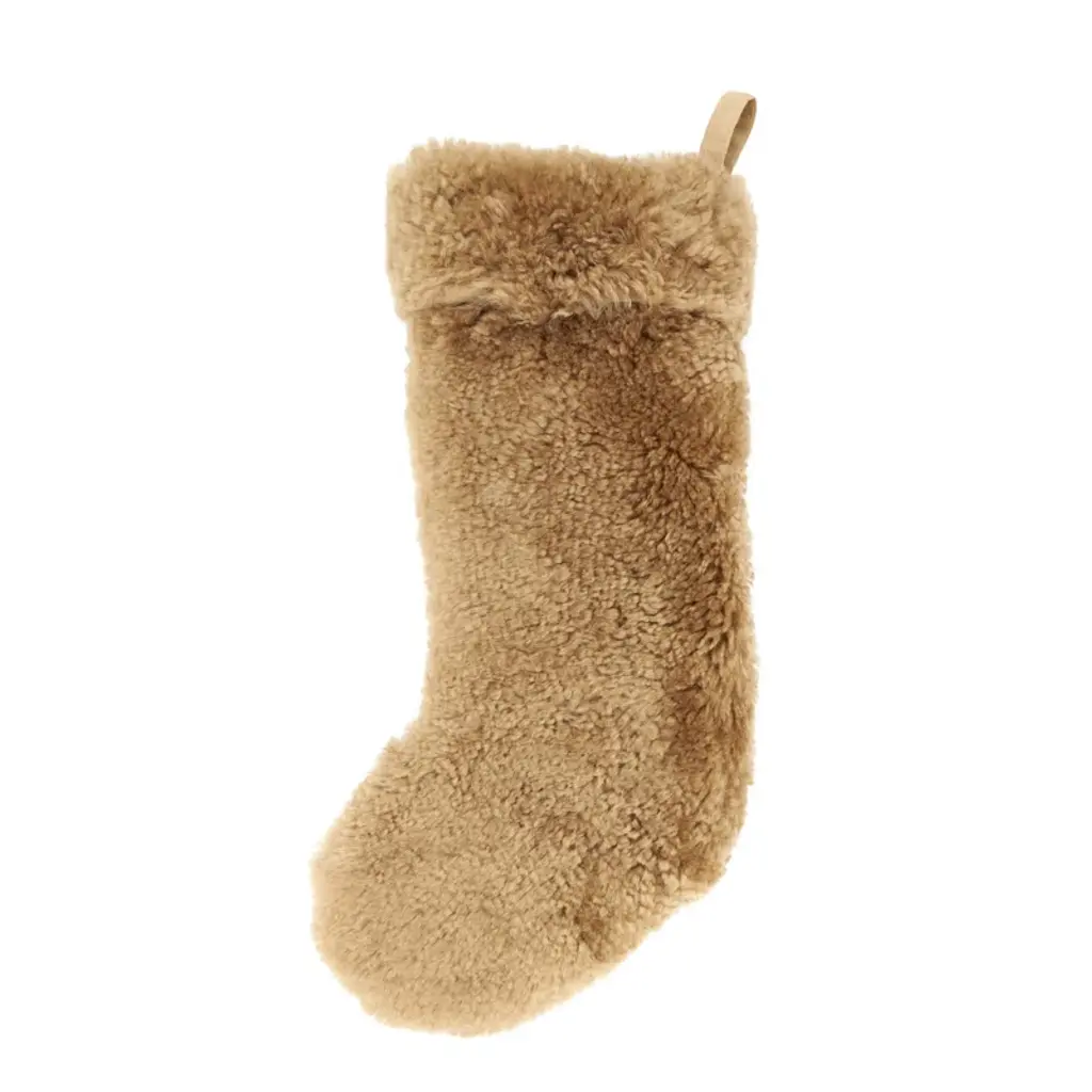 Textured faux fur Christmas stocking with hanging loop.