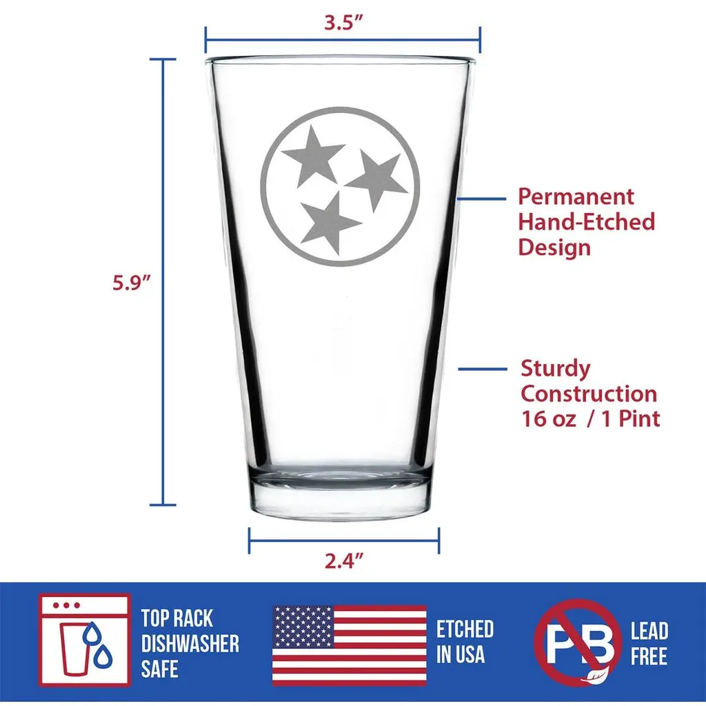 Tennessee Flag - Beer Can Pint Glass - Tennessee Gifts & Decor - 16 Ounce - Clear