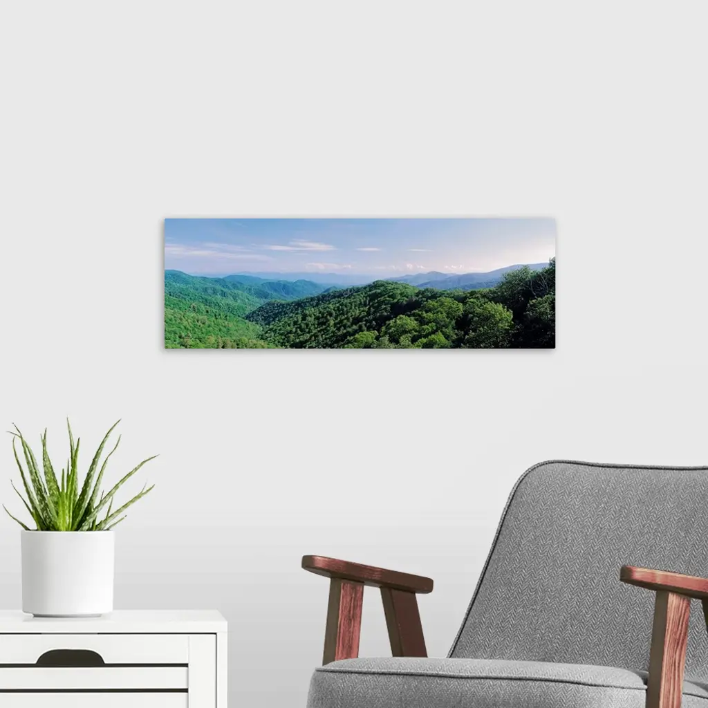 Tennessee, Great Smoky Mountains National Park, Aerial view of the Newfound Gap Road wall art for home and office decor. Discover canvas art prints, photos, mural, big canvas art and framed wall art in GreatBigCanvas.com's varied collections.
