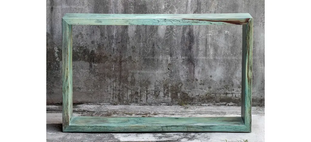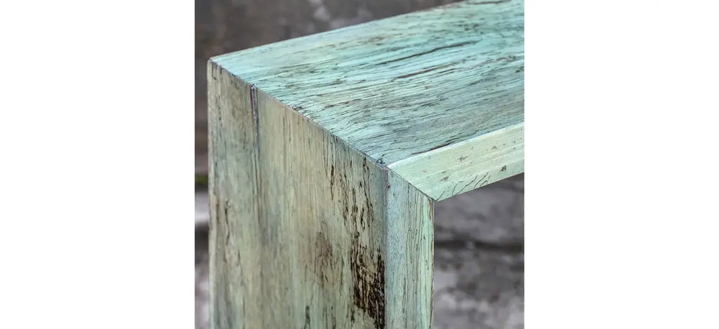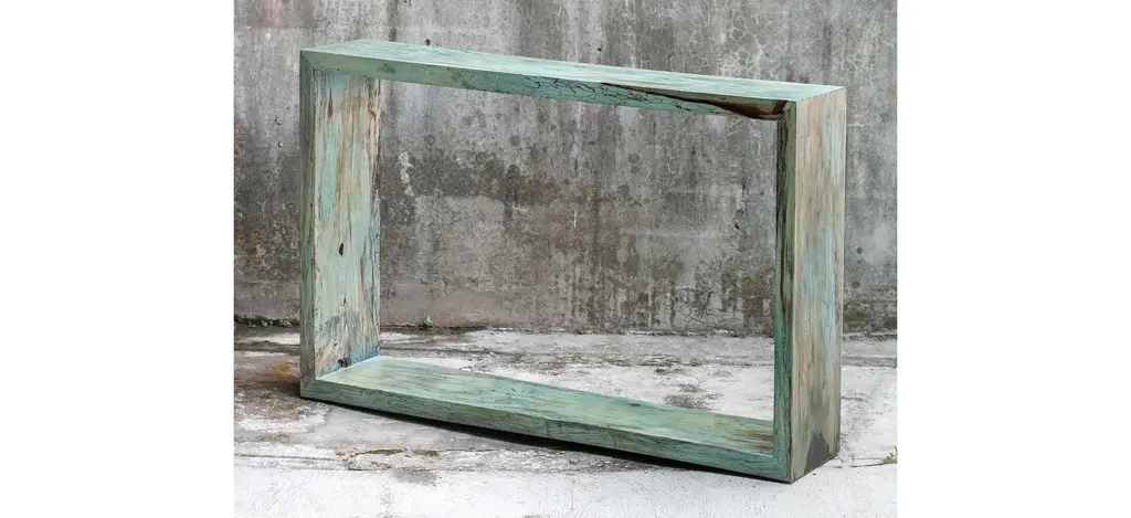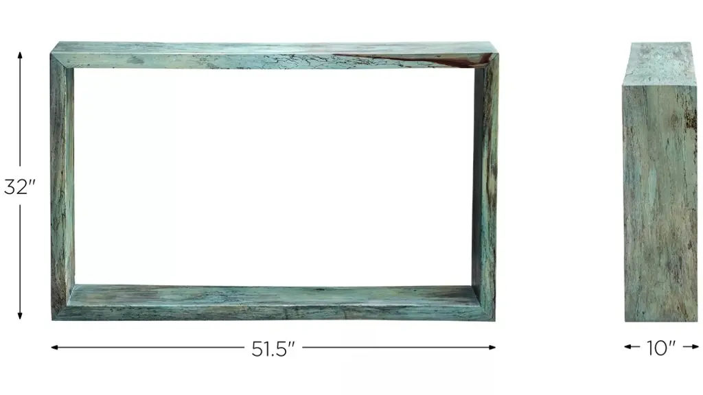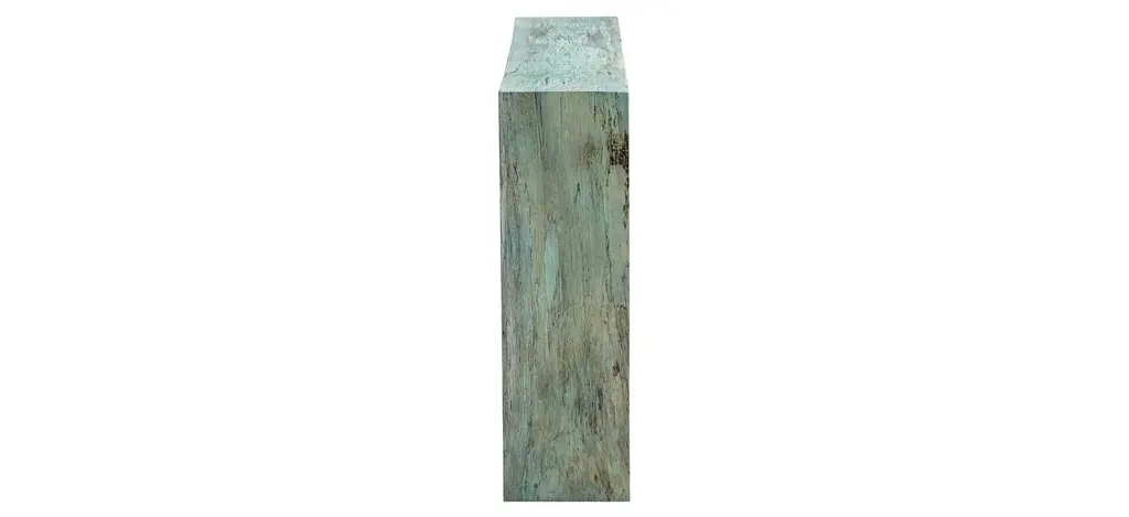 This fun statement Teo Wooden Console Table features naturally tamarind wood, finished in a soft Caribbean blue-green. Cracks and variations in the grain are natural to this type of wood.