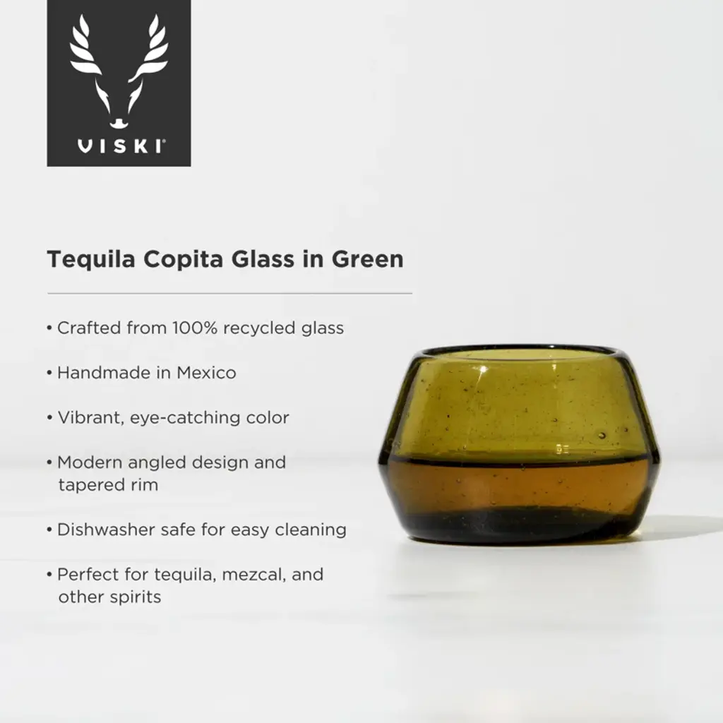 Inspired by traditional clay vessels for sipping mezcal, this colorful glassware is handmade by Mexican artisans from 100% recycled glass. Bring a pop of color to your nightcap and enjoy your favorite tequila or any spirit in this unique colored glass.