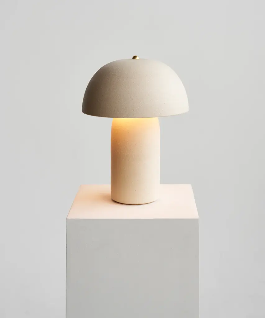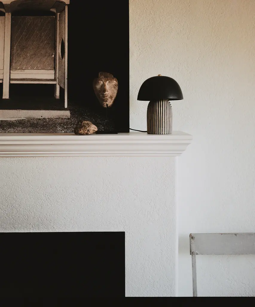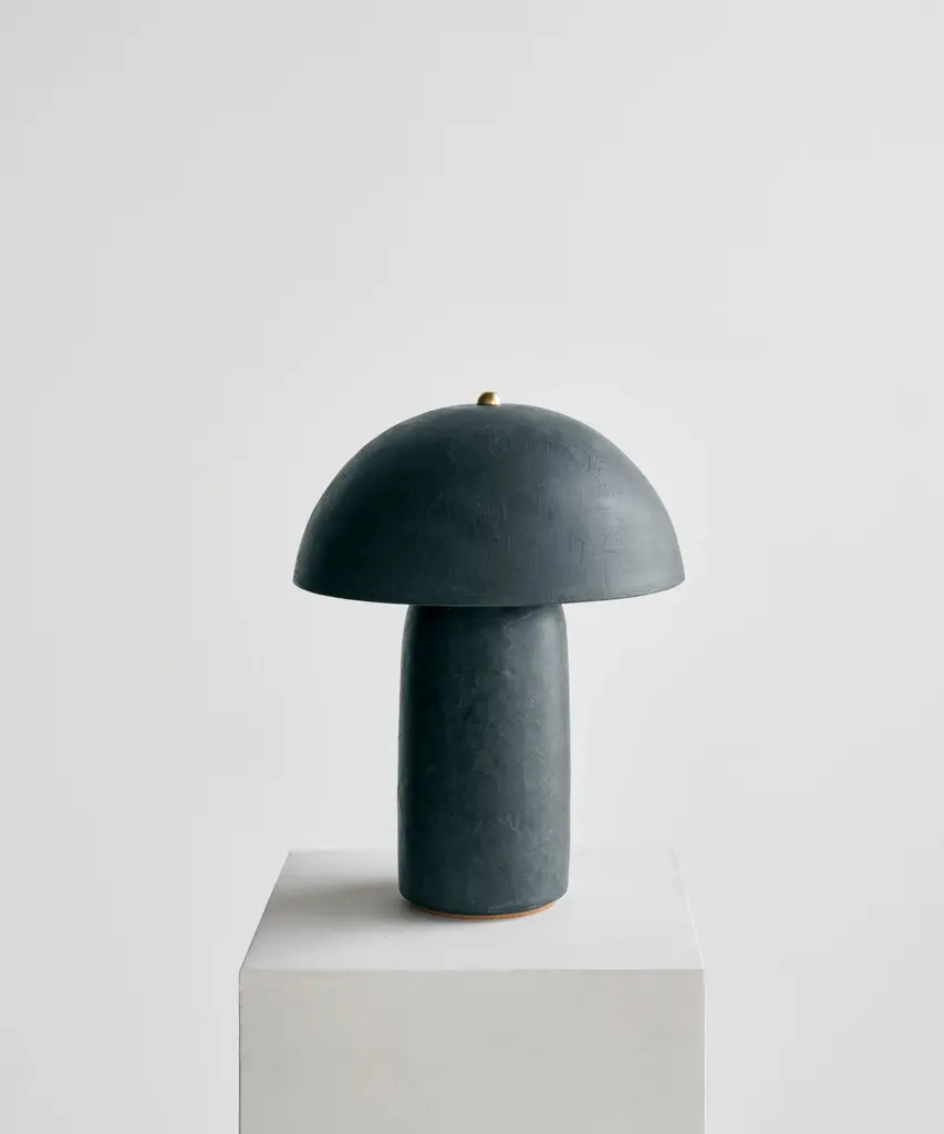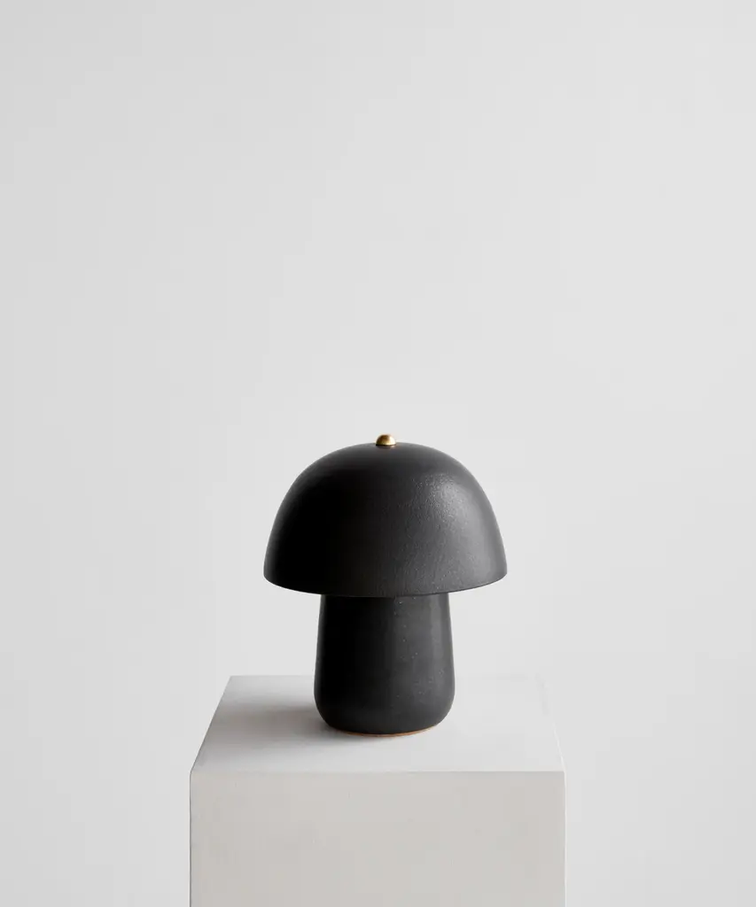 The Tera Lamp is a staple in the Ceramicah collection. Each Tera Lamp is made of a wheel-thrown ceramic shade and ceramic base, brass hardware, a dimming switch, and LED light bulbs. Striped based with black glazed shade. Each stripe is hand-painted in a matte underglaze that allows the texture of the stoneware to come through giving it a polished yet organic look. Ceramicah is a Los Angeles ceramics studio by Micah Blyckert and Alexandra Cadiz. Both former Architects, the pair is influenced by their love of organic forms and textures, as well as the landscape of California.
