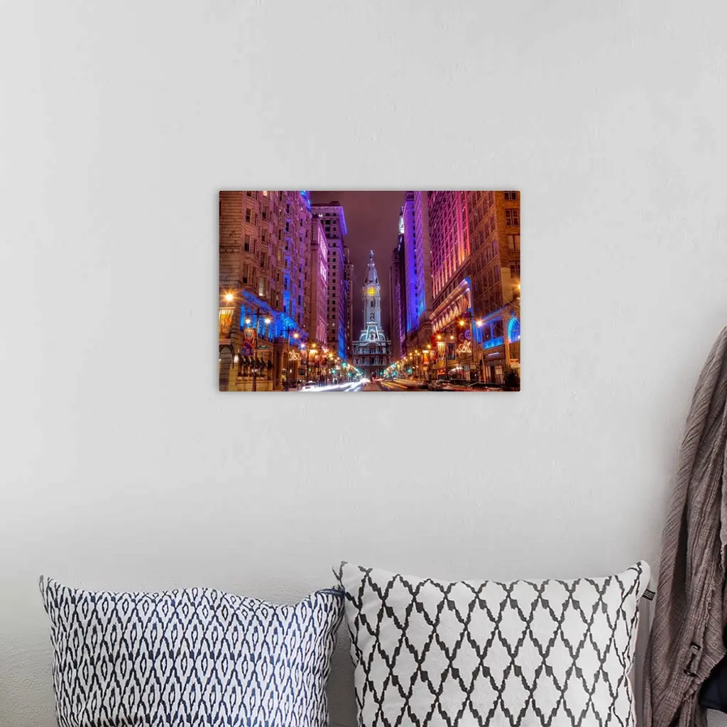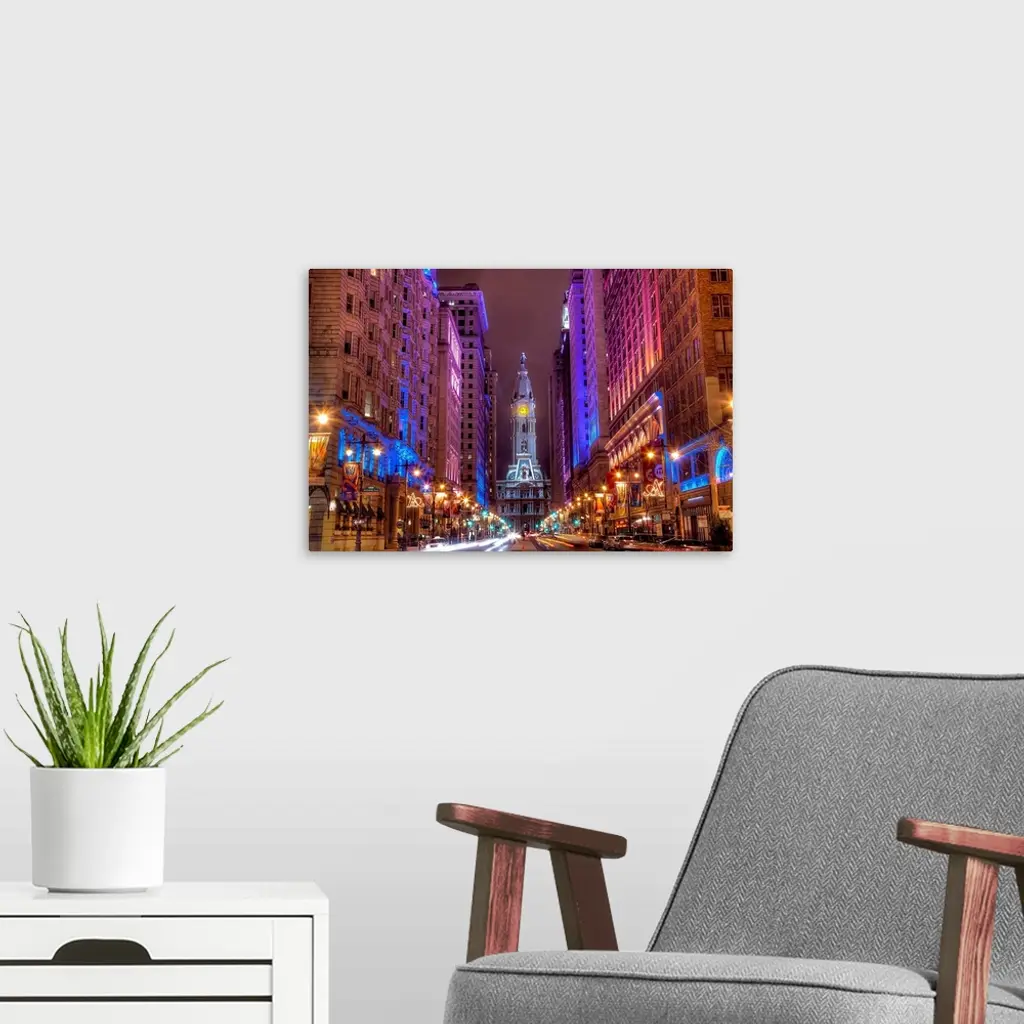 Terminal View Of Philadelphia City Hall Looking Up Broad Street In Center City.