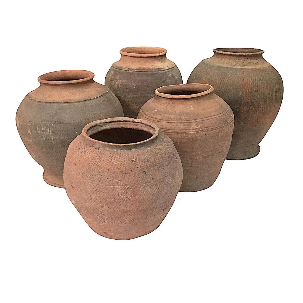 North Vietnamese textured terra cotta pots that were used as food vessels.Each pot varies in size and texture.Sizes range from 7" diameter x 6" height to 7" diameter x 9" height.Works well to make a collection with S4287B/C/ESold individually.