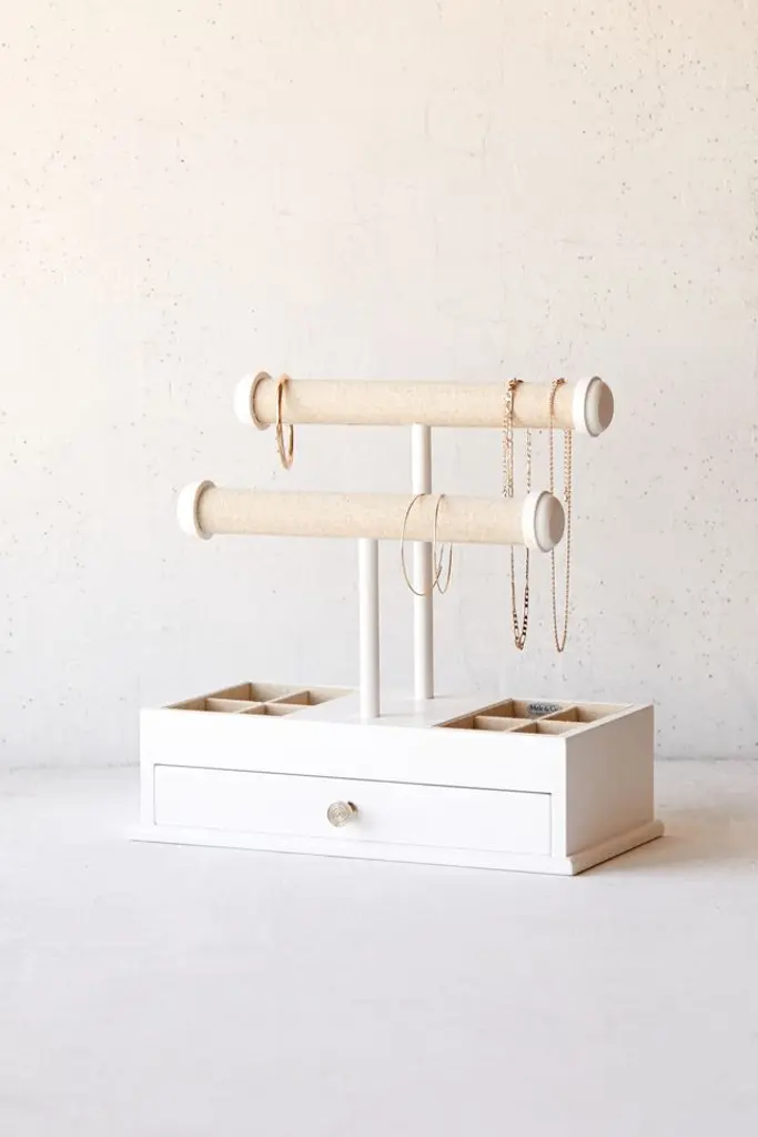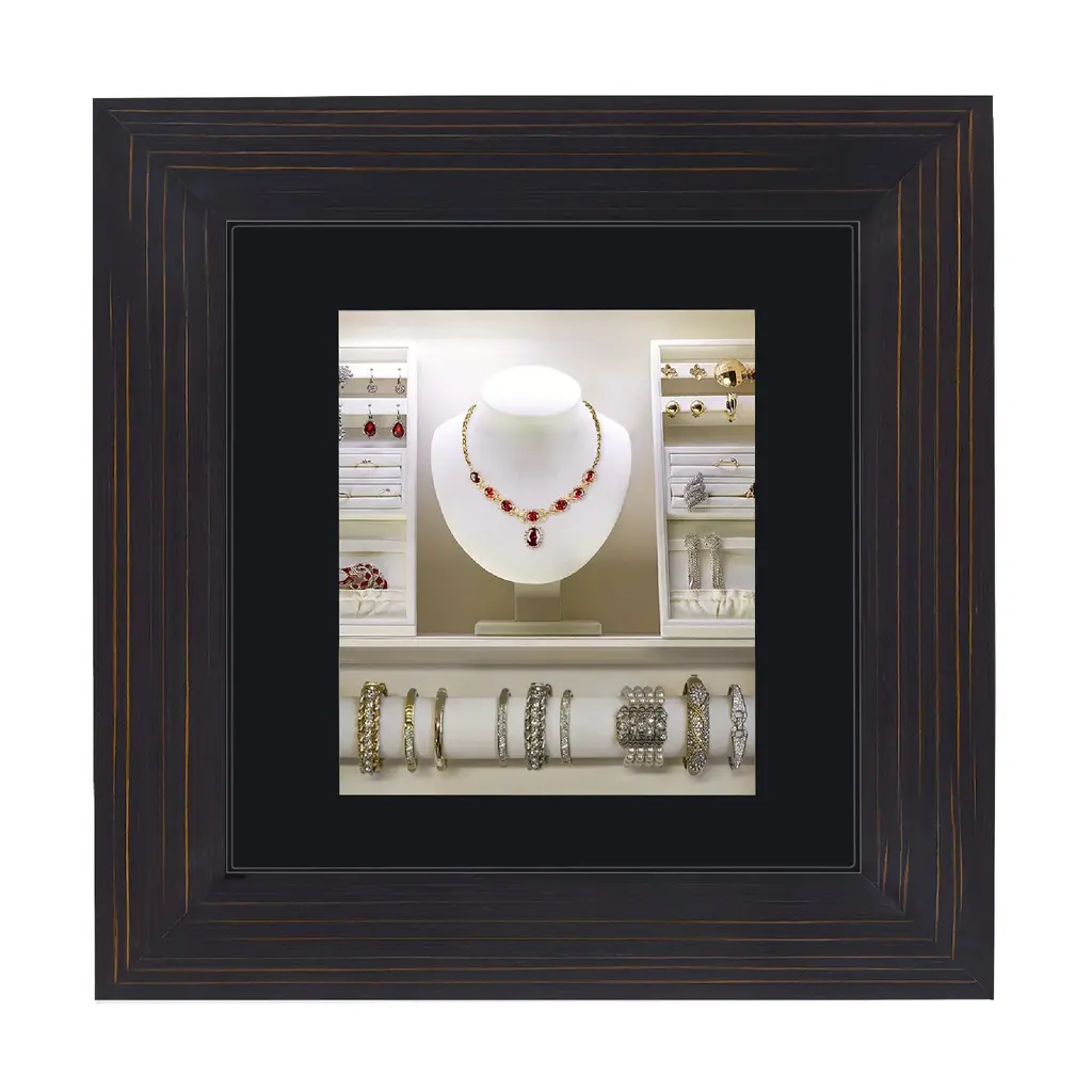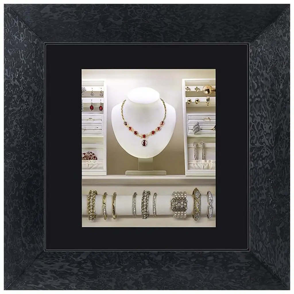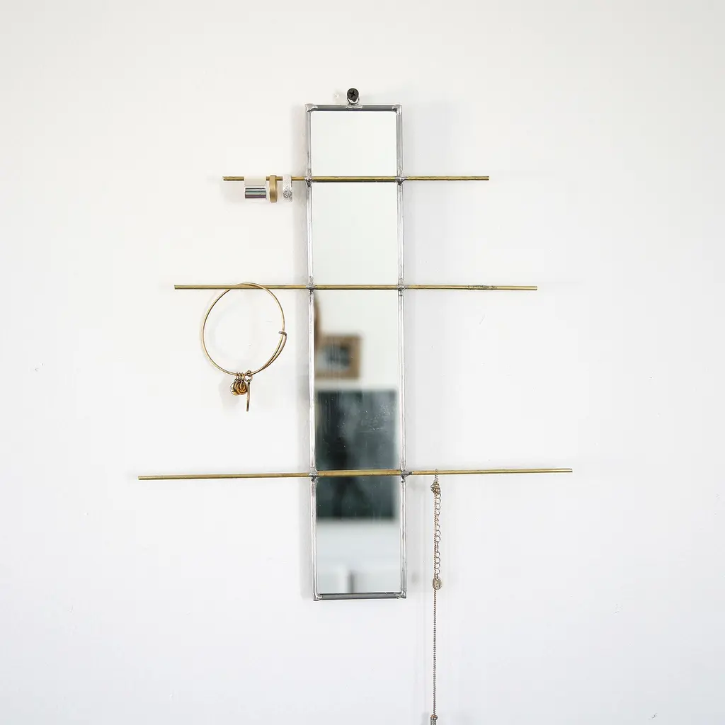 Glass and soldered metal in a Gold finish. Linen lining. Imported.