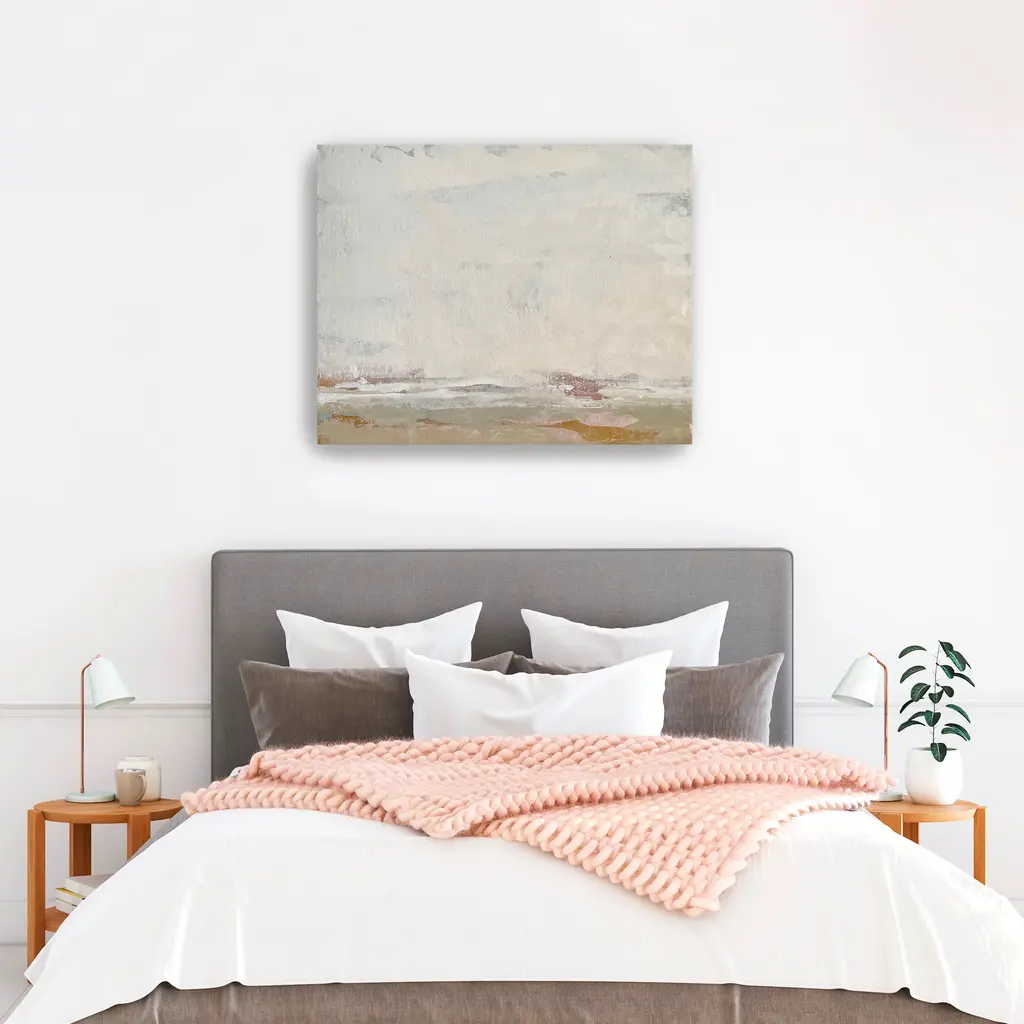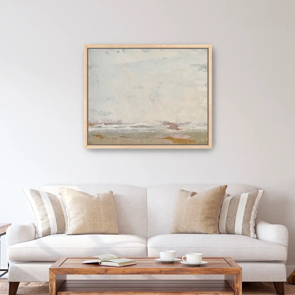 Add a touch of elegance to your home with the "Terrain" canvas art print by Haley Knighten. This piece features soothing neutral earthy tones that blend harmoniously, creating a serene and sophisticated atmosphere. Its abstract landscape design enhances both contemporary and classic interiors alike. Available in black frame, dark walnut frame, oak frame, or as a wrapped canvas. Our Gallery Wrap Canvas Prints are proudly assembled with high quality materials in California, USA. Each piece is printed on a thick, archival grade canvas using Giclee technology. It is then hand-stretched by our experienced artisans over solid wood bars, which will not warp over time. The final product is a piece personally crafted for you to confidently display on your wall. Care and Assembly: Ensure that the location of your piece has little to no exposure to heat, sunlight, and moisture. Wipe clean, only if needed. Each piece includes a sawtooth hanger to hang on your wall horizontally.