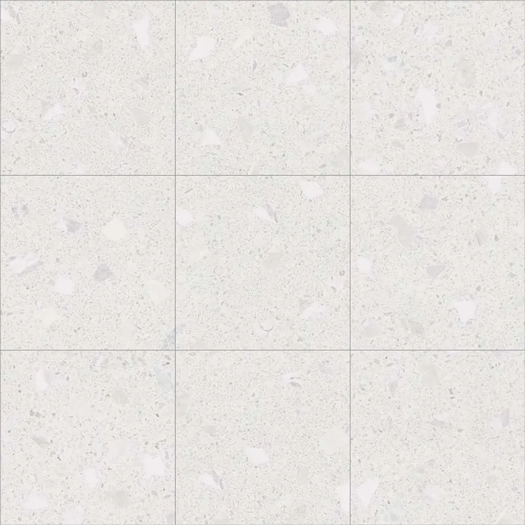 Timeless style meets modern durability with our Terrazzo Collection. Made from porcelain, these six tiles offer two captivating looks: one featuring delicate, matching speckles that create a refined, seamless terrazzo effect, and another adorned with vibrant fragments that mimic the natural beauty of rock sediments, infusing your surroundings with a burst of color and individuality. Ideal for floors, walls, and outdoor areas, this collection merges heritage with modern style, allowing you to create a space that's distinctly your own. FEATURES: Porcelain, singular, square, matte, stone look, pressed, floor and wall tile Impervious and waterproof; Withstands sun and rain Matte finish with a V2 slight variation Made from high-quality porcelain Available in two sizes: 24" x 24" and 8" x 8" Matte finish for a sleek, refined look Perfect for adding texture and depth with the distinct sediment/fragment patterns Authentic terrazzo appearance, combining classic beauty with modern durability Suitable for floors, walls, and feature walls Ideal for bathrooms, showers, kitchens, fireplace surrounds, outdoors, floors, walls Approved for residential and commercial installations A case of the 8" x 8" tile comes in 25 pieces and covers 10.76 square feet A case of the 24" x 24" tile comes in 4 pieces and covers 15.5 square feet Easy to install, clean and maintain The 24" x 24" tile comes in 4 colors: Black, White, Black Multi and White Multi The 8" x 8" tile comes in 2 colors: Blue and White PEI rating varies DIMENSIONS: Individual tile size (Blue, White): 8 inches L x 8 inches W Surface area per carton: 8" x 8" - 10.76 square feet Pieces per carton: 8" x 8" - 25 pieces Sample tile size: 6 inches L x 6 inches W Individual tile size (Black, White, Black Multi, White Multi): 24 inches L x 24 inches W Surface area per carton: 24" x 24" - 15.5 square feet Pieces per carton: 24" x 24" - 4 pieces Sample tile size: 6 inches L x 6 inches W