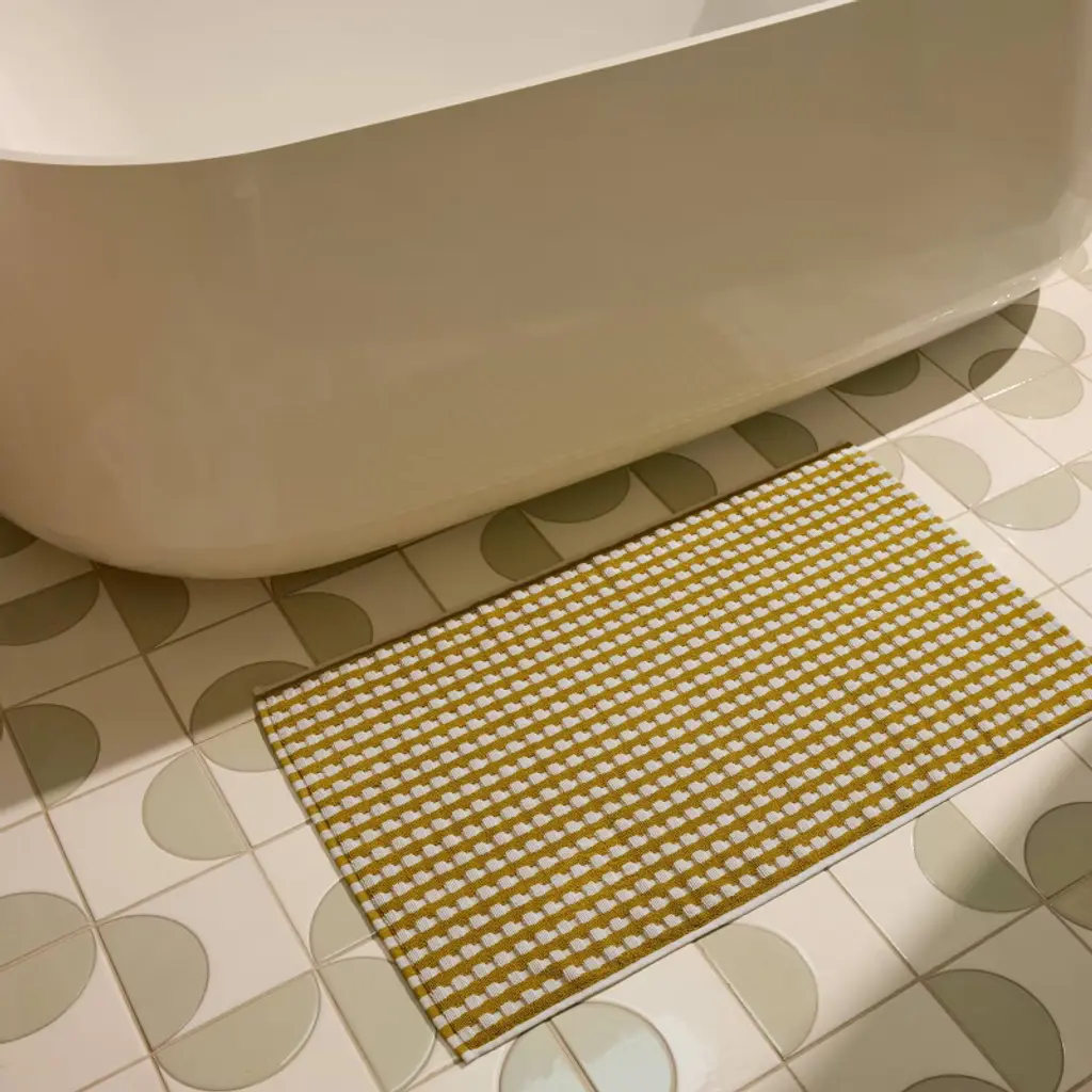 Introducing: Parachute for Target. Impossibly soft bedding and bath linens that inspire just five more minutes. Transform your space – and your everyday routines – with this exclusive collection. Instantly update your bathroom with our bold, playful Terry Check Bath Collection. Crafted from 100% cotton – this absorbent, plush tub mat will enhance your daily routine.Discover our entire rainbow of perfect neutrals and muted jewel tones – available in solids and stripes that mix and match with ease. Parachute for Target: Almost too comfortable.