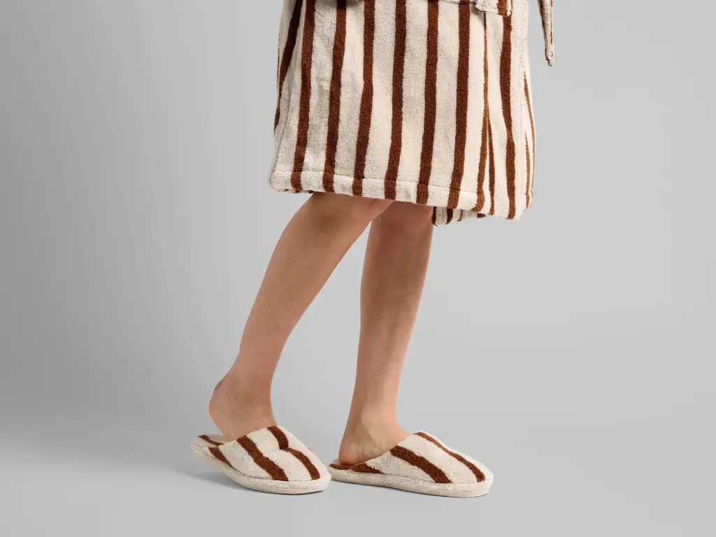 Terry Stripe Slippers (Bone And Tobacco)