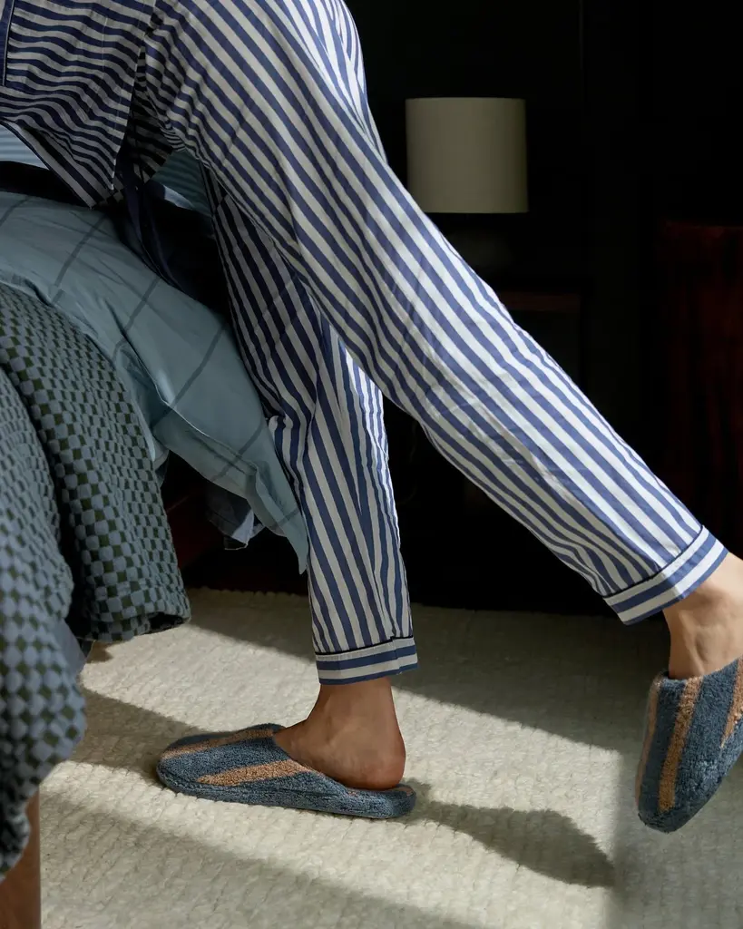 Pattern, please! Soft, supportive, and mood-lifting, our terry striped slippers add a playful pep to your step. Our classic slipper, thoughtfully re-designed for added comfort and longevity, they pair perfectly with the Terry Stripe Robe for an easy at-home uniform.