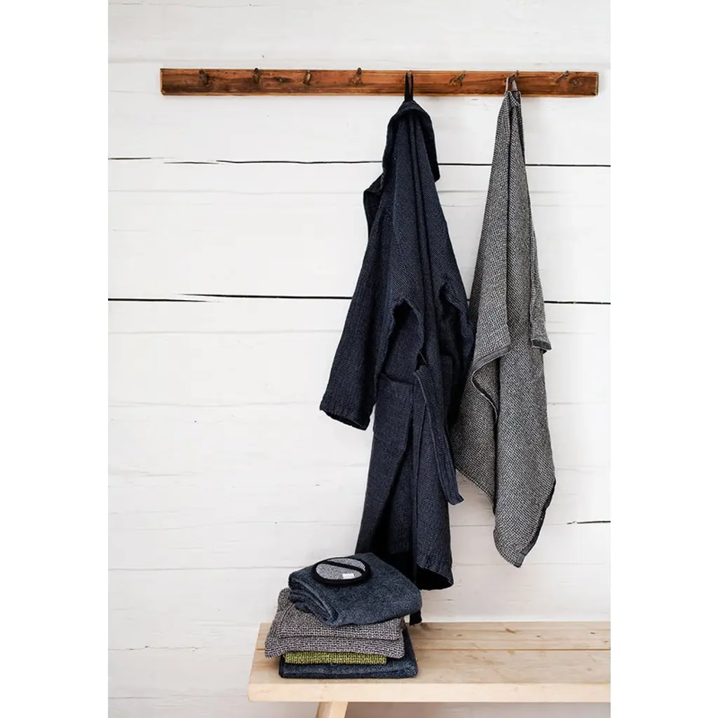 Terva giant towel by Lapuan Kankurit is the perfect place to wrap up after a warm shower or sauna. The big towel is made from an innovative blend of European linen, Tencel and cotton with Oeko-Tex standard. The material is lightweight, quick-drying and absorbent, and feels pleasantly soft against bare skin. The Terva collection includes towels, sauna seat covers and bathrobes in different sizes and materials, produced mainly in the own weaving mill of Lapuan Kankurit in Lapua, Finland.