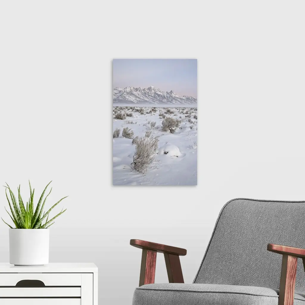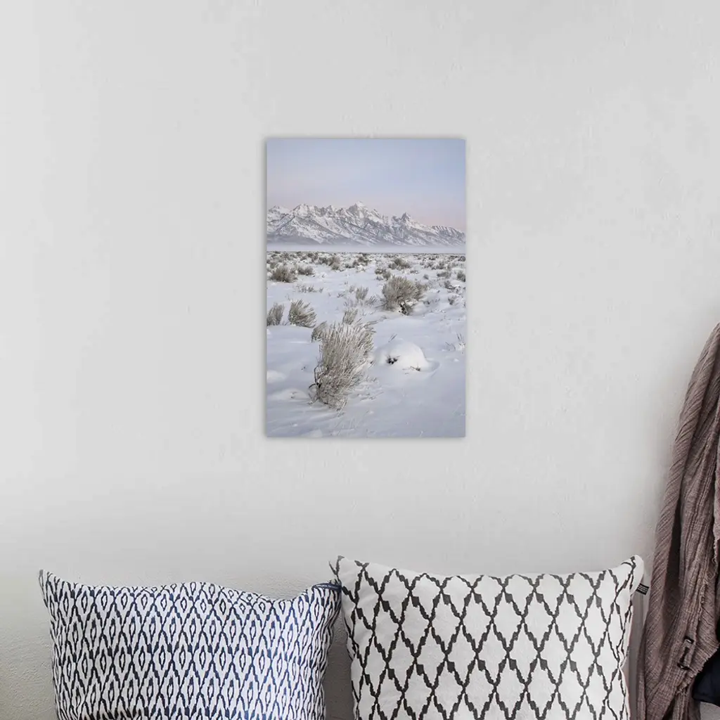 Teton Range at Dawn in winter, Grand Teton National Park, Wyoming wall art for home and office decor. Discover canvas art prints, photos, mural, big canvas art and framed wall art in GreatBigCanvas.com's varied collections.