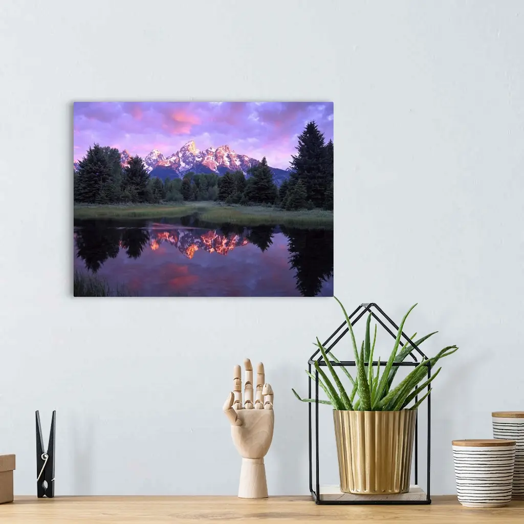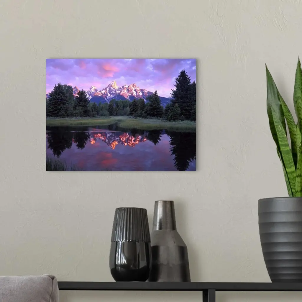 Teton Range at sunrise, Schwabacher Landing, Grand Teton National Park, Wyoming wall art for home and office decor. Discover canvas art prints, photos, mural, big canvas art and framed wall art in GreatBigCanvas.com's varied collections.