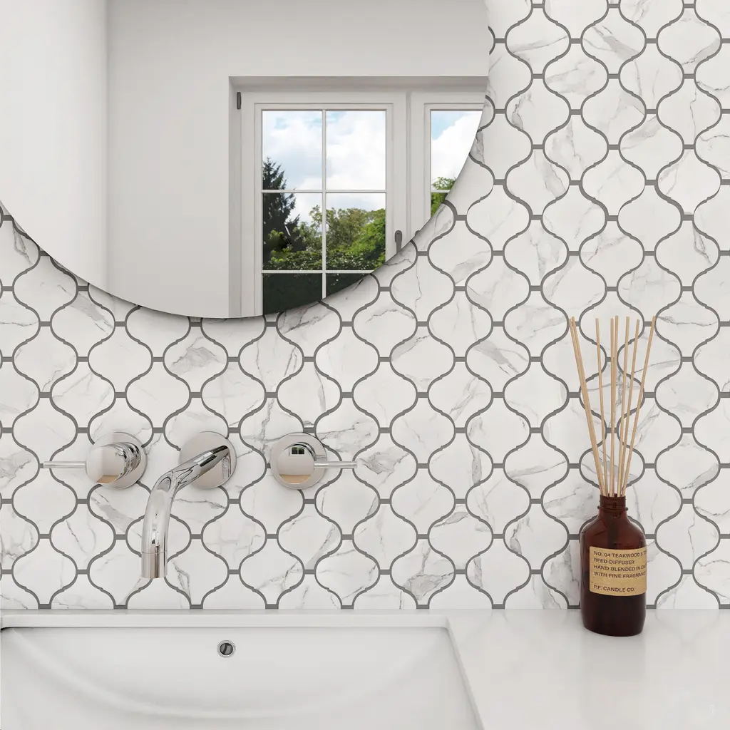 This elongated arabesque-shaped tile is perfect for any setting, traditional enough for historical renovations or modern enough for new construction. Being impervious to water, these tiles are ideal for backsplashes and even offer frost resistance, making them a fit for outdoor installations.