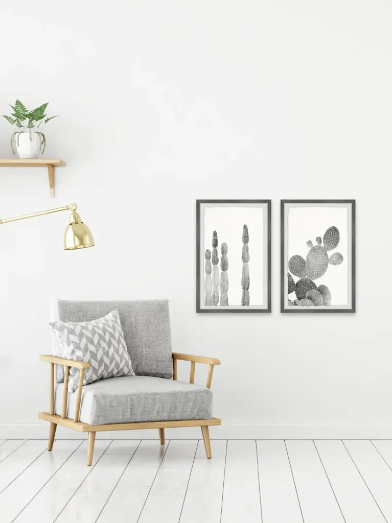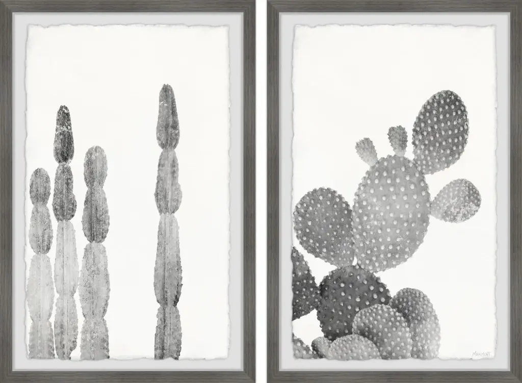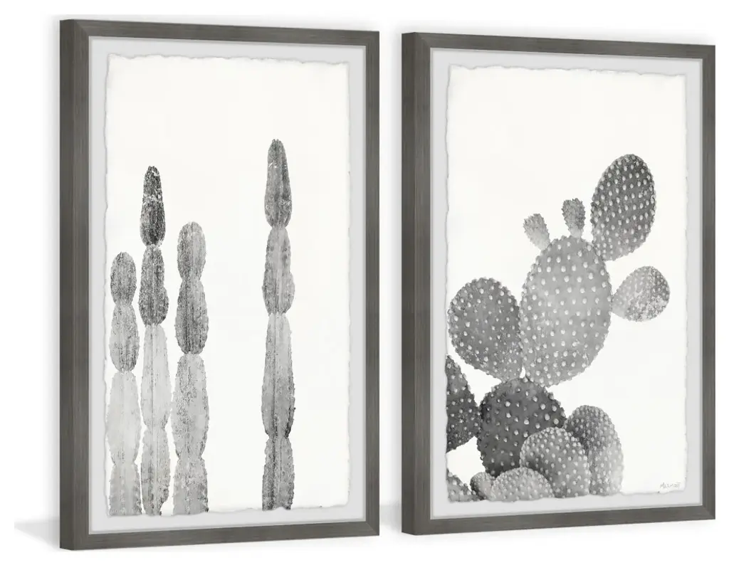 A duo of monochrome photographs of a cacti against a clear background. These portraits of wild flora is the perfect way to add a touch of life to any living space. Proudly printed in the USA, this piece is printed on high quality archive paper and professionally hand-framed. With wall-mounting hooks included, this artful accent is ready to hang up as soon as it reaches your front door.- (2) panels of 12x18- Top quality Giclee print on high resolution Archive Paper- Hand cut deckled edges- High quality durable non-warping frame- Finished under shatter resistant plexiglass- Arrives ready to hang- Includes a certificate of authenticity- Printed in the USA