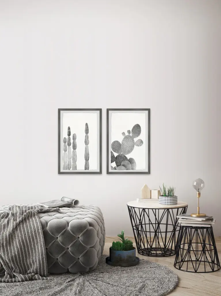 A duo of monochrome photographs of a cacti against a clear background. These portraits of wild flora is the perfect way to add a touch of life to any living space. Proudly printed in the USA, this piece is printed on high quality archive paper and professionally hand-framed. With wall-mounting hooks included, this artful accent is ready to hang up as soon as it reaches your front door.- (2) panels of 20x30- Top quality Giclee print on high resolution Archive Paper- Hand cut deckled edges- High quality durable non-warping frame- Finished under shatter resistant plexiglass- Arrives ready to hang- Includes a certificate of authenticity- Printed in the USA