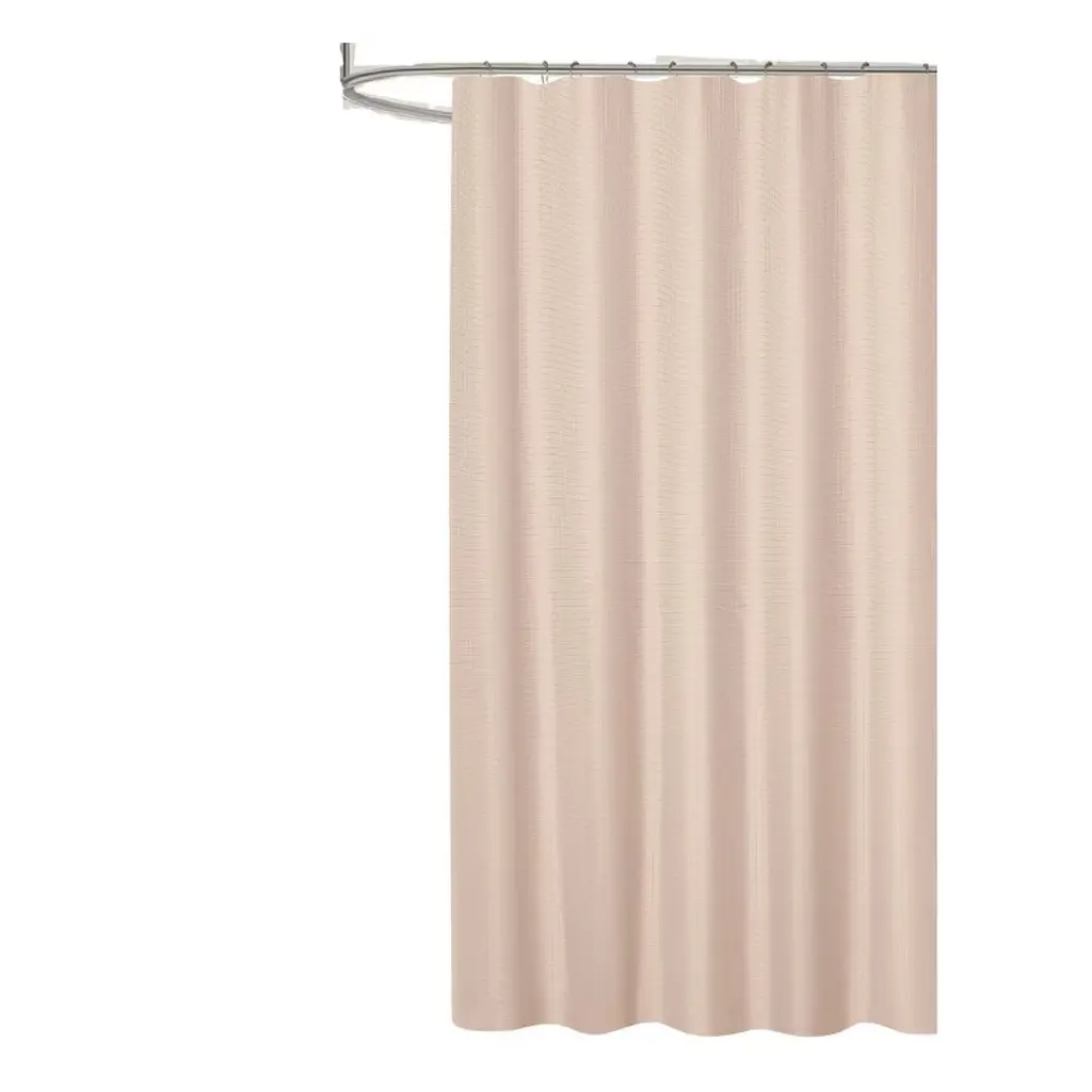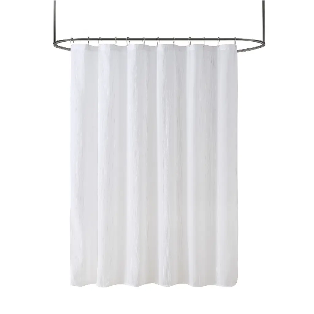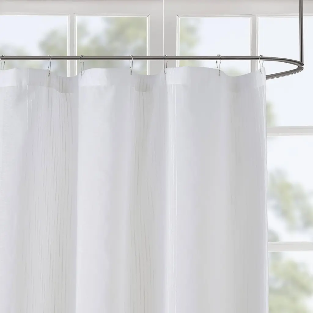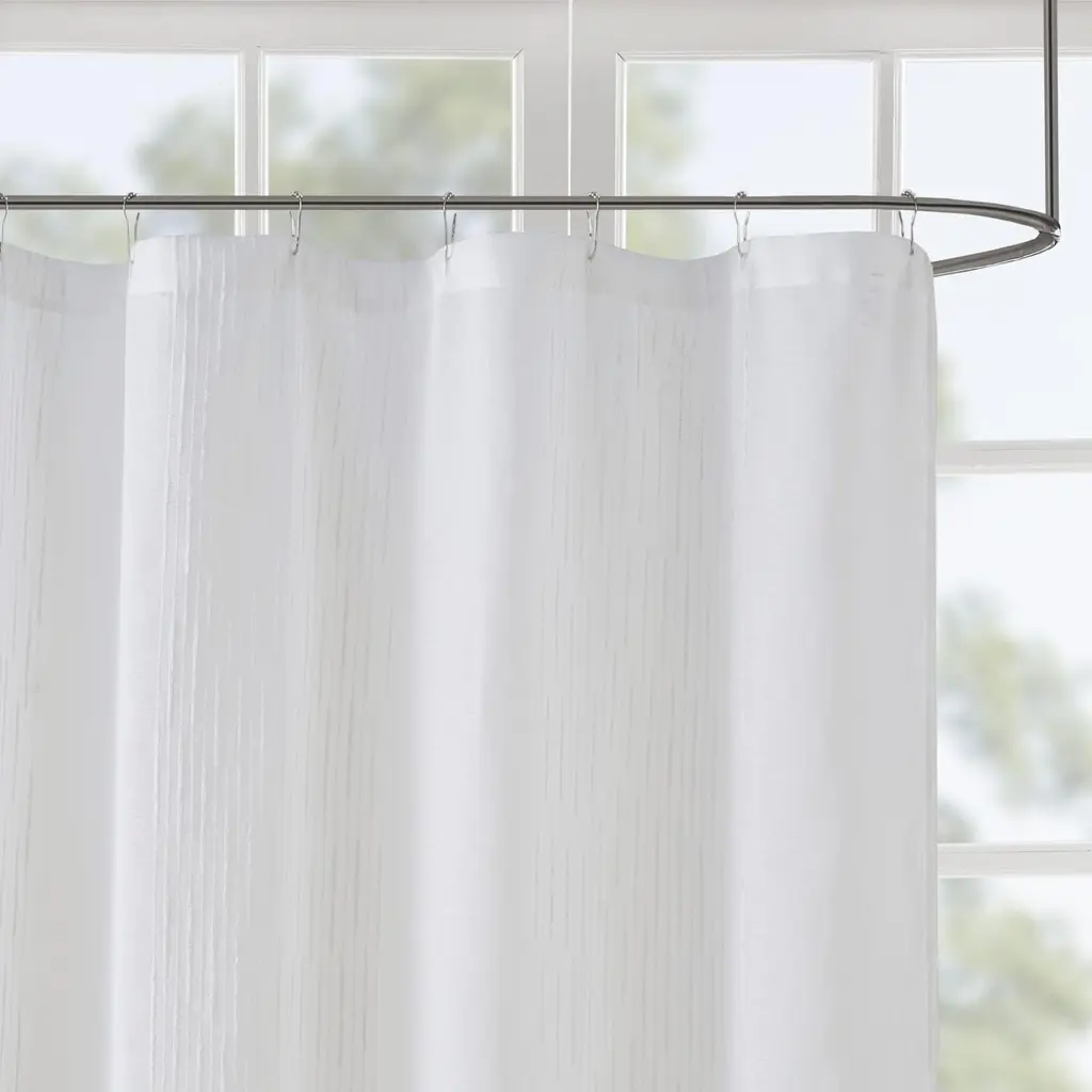 Textured Striped Modern Mid-Century Bathroom Decor, 72x72", Ivory - Multicolor