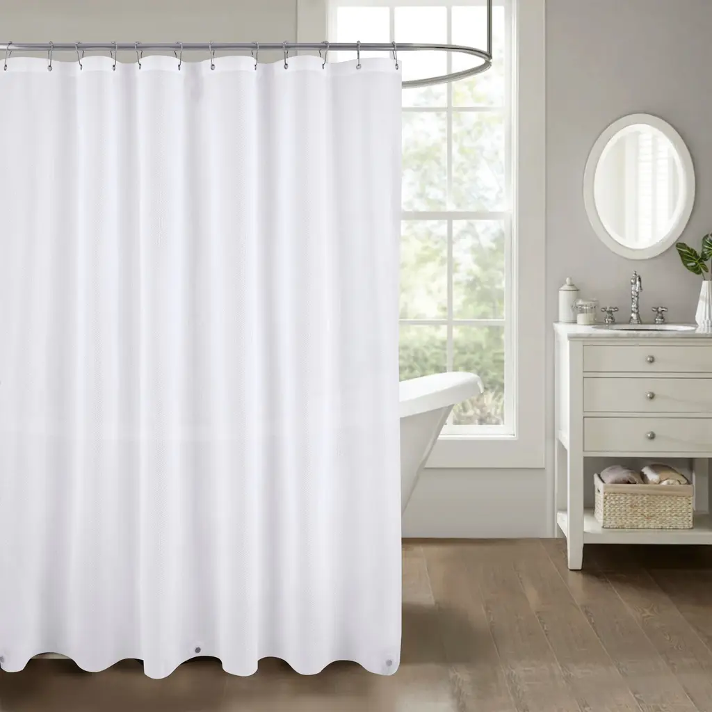 Textured Striped Modern Mid-Century Bathroom Decor, 72x72", Ivory