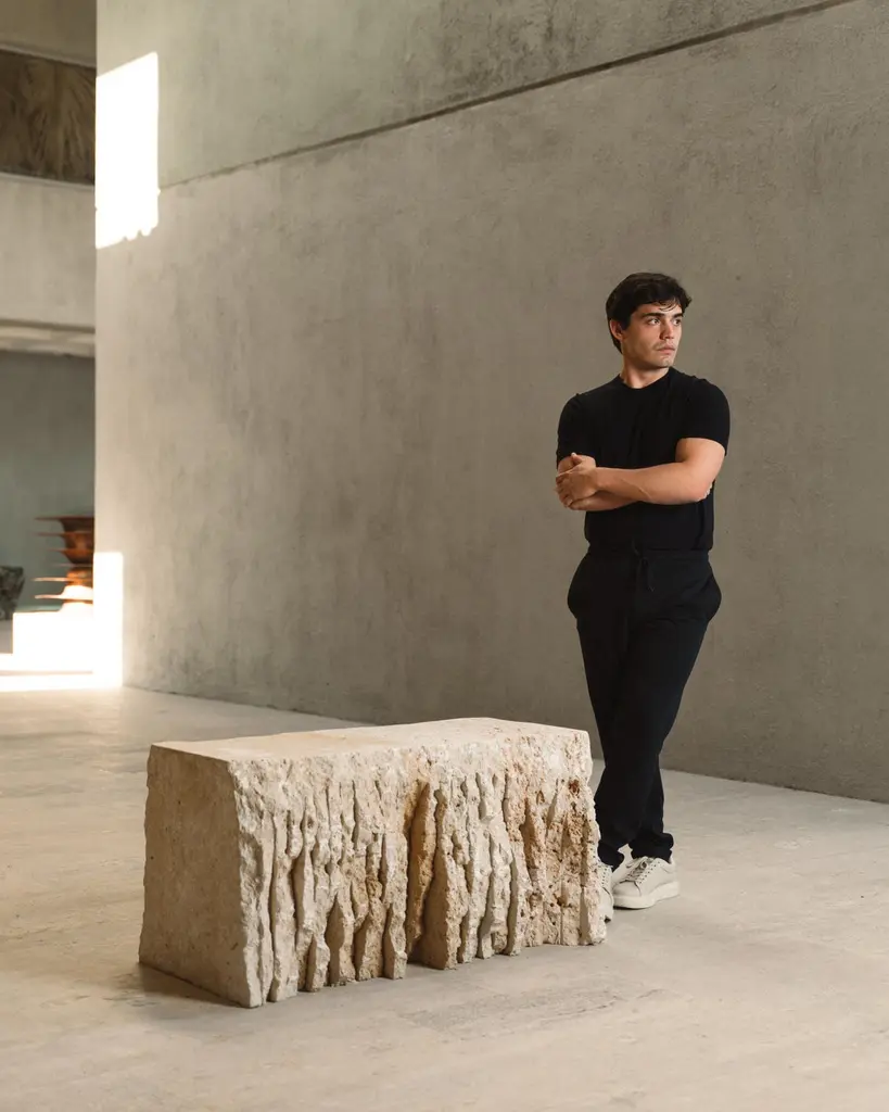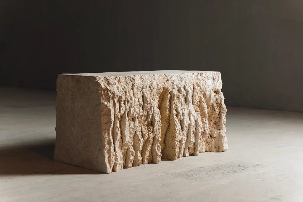 Fractus sculptural seating by Andres Monnier.One of a Kind.Dimensions: W 120 x L 50 x H 50 cm.Materials: Coralina clasica.Stone options available: Grey, black and white marble, natural and red travertine, volcanic, basalt, granite rock, onyx, obsidian. More dimensions available. Scientists tend to say that mathematics is the language of the universe. We humans interpret all we perceive and math is one of the evidences. If we zoom out from our heads, we would appreciate that everything in this universe is connected. Just as our anatomic composition, the nature we coexist with, the planet we live in, the galaxy we are part of, the space we share. this universe is so much more complex than what we humans are able to understand. Many theories argument about a fractal universe. a fractal is a never-ending pattern. Fractals are infinitely complex patterns that are self-similar across different scales. They are created by repeating a simple process over and over in an ongoing feedback loop. is it a coincidence that the neuronal web from our minds, the roots and structure of plants and trees, and the hyphae from mycelium (fungi) have the same shape and forms? The same design? Or it's an evidence of this fractal universe?Designer's biographyTreko concrete is a Mexican studio based in Ensenada, that has as a purpose to create functional handcrafted furniture and sculptural pieces to tell stories with art and design. With the direction of Andres Monnier, Treko concrete now creates handmade fire pits, art objects, and functional furniture with natural stone, mirror, concrete, wood, and metal. Treko works with different techniques and languages of creation to innovate new purposes in conventional furniture.