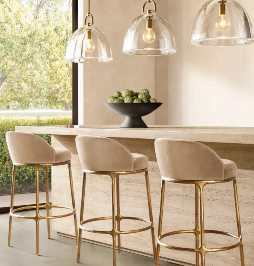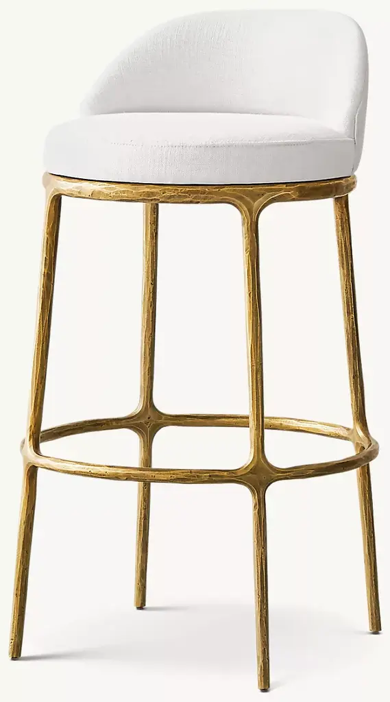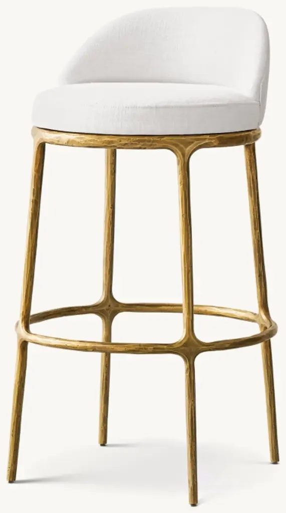 Inspired by the sculptural works of Salvador Dalí and Diego Giacometti, our stool from Julie Lawrence merges the rustic sensibility of a hand-forged solid brass or solid stainless steel base with tailored upholstery. Employing an ancient fabrication process, artisans hand hammer the metal bars to reveal an alive, imperfect and organic texture, a counterpoint to the frame's slender, tapered silhouette. ALSO AVAILABLE IN LEATHERSHOP THE ENTIRE COLLECTION