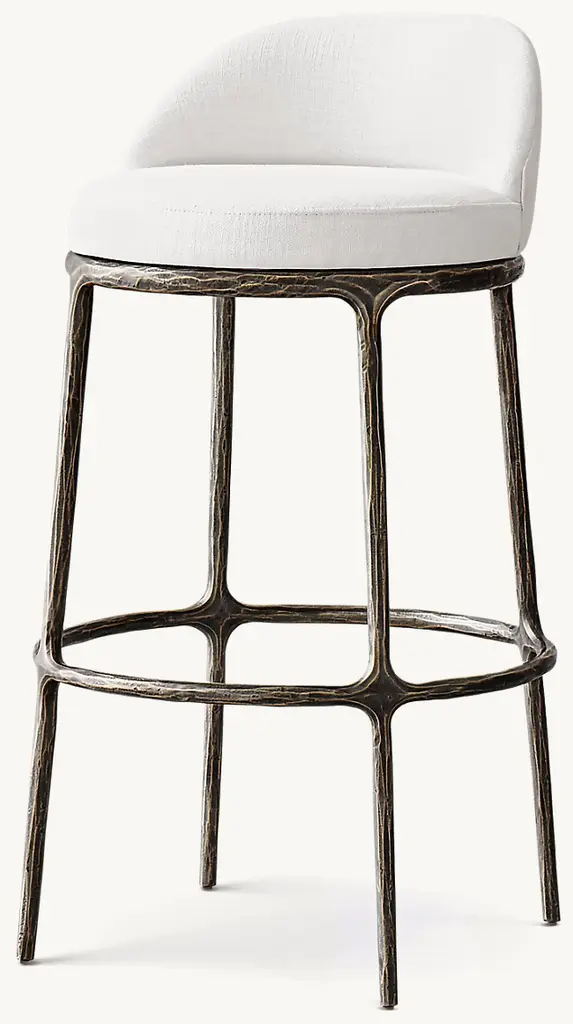 Inspired by the sculptural works of Salvador Dalí and Diego Giacometti, our stool from Julie Lawrence merges the rustic sensibility of a hand-forged solid brass or solid stainless steel base with tailored upholstery. Employing an ancient fabrication process, artisans hand hammer the metal bars to reveal an alive, imperfect and organic texture, a counterpoint to the frame's slender, tapered silhouette. ALSO AVAILABLE IN LEATHERSHOP THE ENTIRE COLLECTION