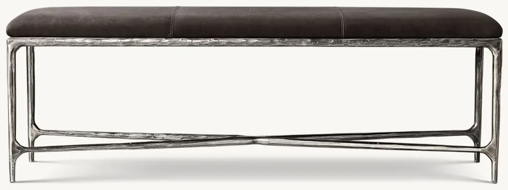 Inspired by the sculptural works of Salvador Dalí and Diego Giacometti, our bed from Julie Lawrence merges the rustic sensibility of a hand-forged metal base with tailored upholstery. Employing an ancient fabrication process, artisans hand hammer the metal bars to reveal an alive, imperfect and organic texture, a counterpoint to the frame's slender, tapered silhouette. ALSO AVAILABLE IN FABRIC SHOP THE ENTIRE COLLECTION
