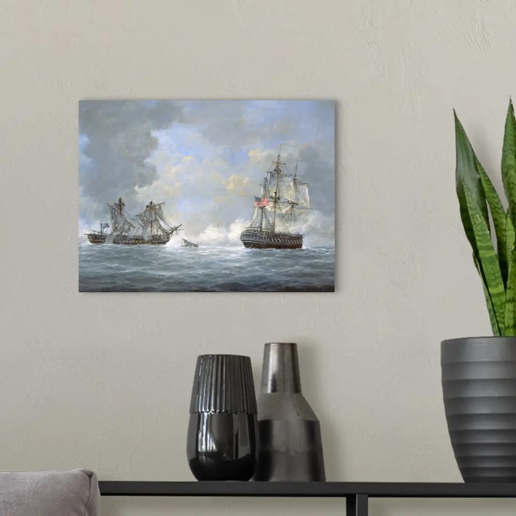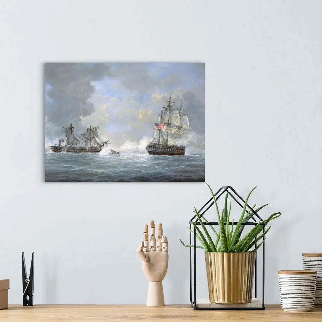 The action between U.S Frigate 'United States' and the British frigate 'Macedonian' wall art for home and office decor. Discover canvas art prints, photos, mural, big canvas art and framed wall art in GreatBigCanvas.com's varied collections.