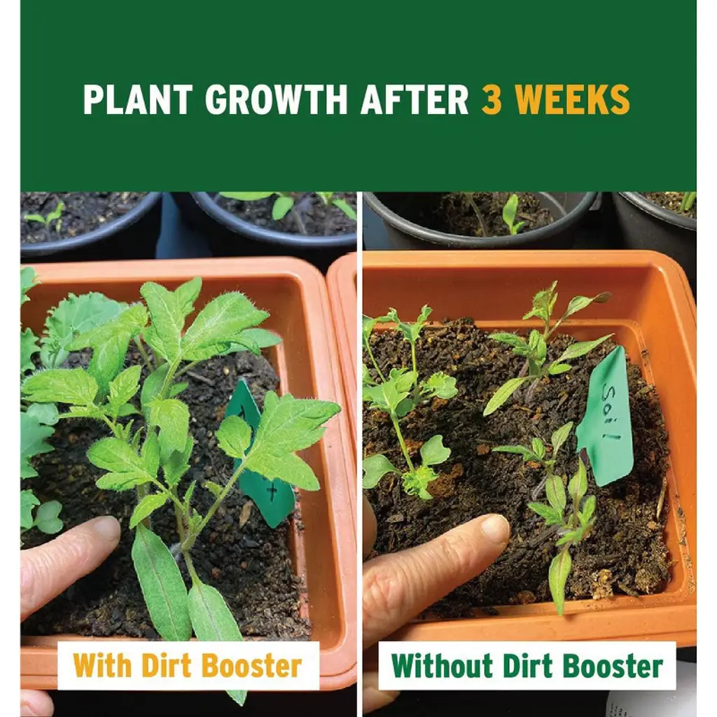 Dirt Booster Plus is an all-natural compost starter and soil amendment for gardens and lawns. Dirt Booster Plus contains microbials, biochar, humic acid, corn distillates and molasses. Full of nutrients and good soil microbes, using Dirt Booster will increase soil fertility and nutrient holding capability. As a compost starter, Dirt Booster Plus yields results in 7 to 12 days working much faster than traditional composting methods.