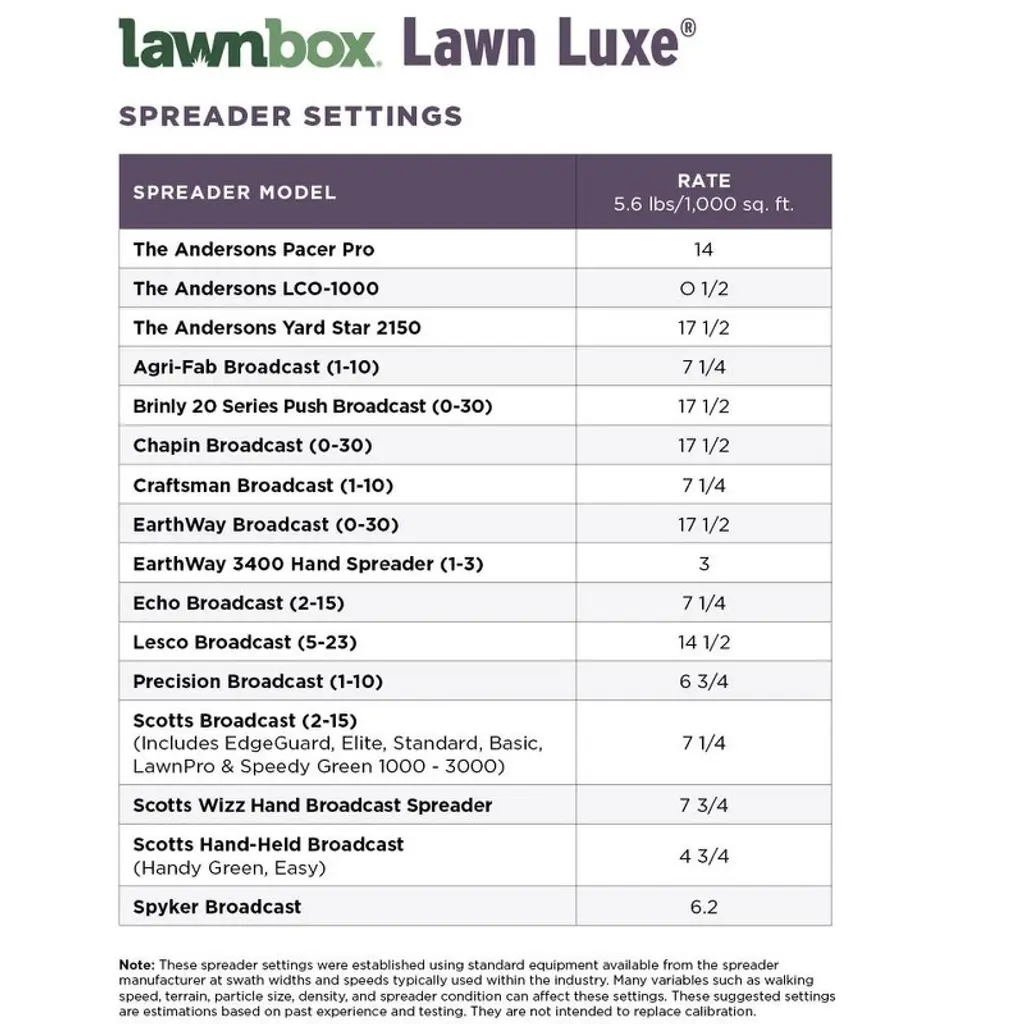 Lawn Luxe 7-0-7 is an OMRI listed, organic summer fertilizer for lawns. This formula is designed to feed your lawn and help it stand up to summer stress from increased traffic, higher temperatures and drought. Lawn Luxe is safe for use on all grass types and includes humic acid to ensure nutrient uptake and soil health. It contains quick and slow-release nitrogen sources for an immediate green-up and continual feeding up to six weeks. Unlike other organic fertilizers, Lawn Luxe does not contain animal ingredients, manure, biosolids or any other waste materials. And, unlike traditional lawn care products, Lawn Luxe does not contain synthetic chemicals. Instead it has top- of-the-line, all natural and organic nutrient sources like soybean meal, sodium nitrate and potash so your family can get back to enjoying your yard immediately after it has been applied!