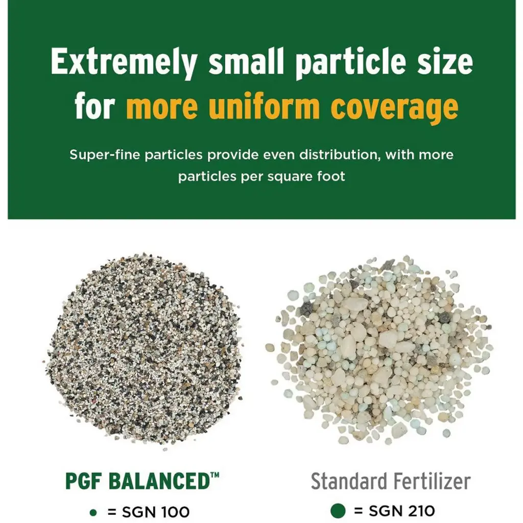 The Andersons PGF Balanced 10-10-10 Fertilizer is a professional-grade fertilizer with extremely fine particle size for more coverage and even distribution. Each 18 lb bag provides up to 5,000 square feet of coverage. PGF Balanced can be used any time during the growing season but is ideal for spring and fall applications because it contains all quick-release sources of nitrogen, providing the plant with immediate nutrition. PGF Balanced also includes micronutrients and 2% iron for extra-deep greening. This perfectly balanced fertilizer can be used on all types of turfs, gardens and flower beds.