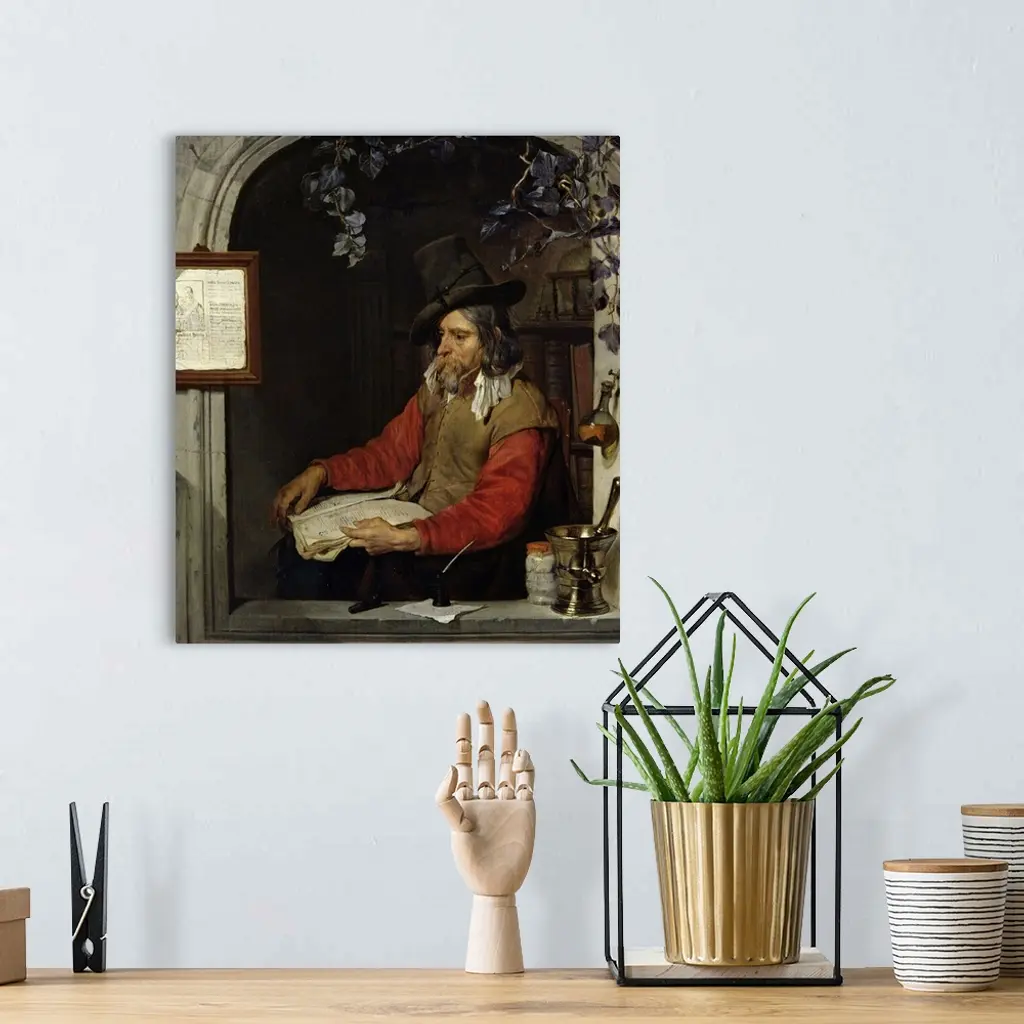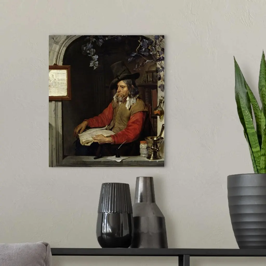 XIR34888 The Apothecary or, The Chemist (oil on panel) by Metsu, Gabriel (1629-67); 27x23.5 cm; Louvre, Paris, France; Giraudon; Dutch, out of copyright