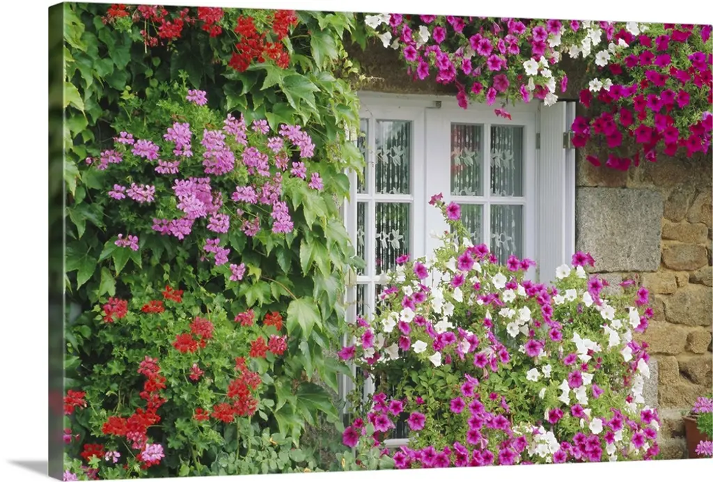 The architecture of the Barcelona - narrow streets, green door on the old buildings and flowers at the entrance.