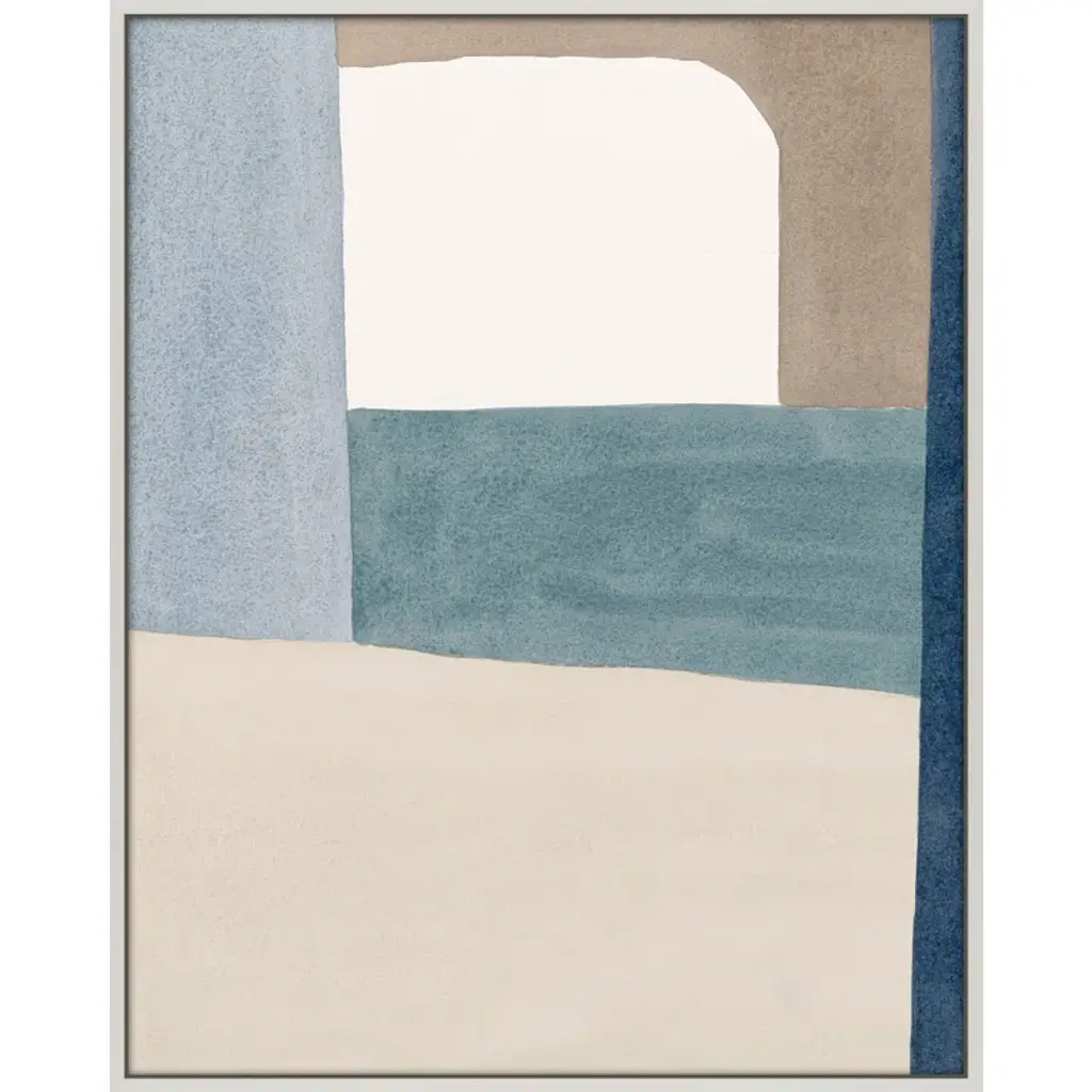 The Balance of Taupe + Indigo 1. This print is a reproduction of watercolor work by abstract painter Julia Balfour, whose layers of pure color construct their own shapes + find their places in this composition. It’s printed on paper in the USA, and arrives ready to hang in a wooden frame.