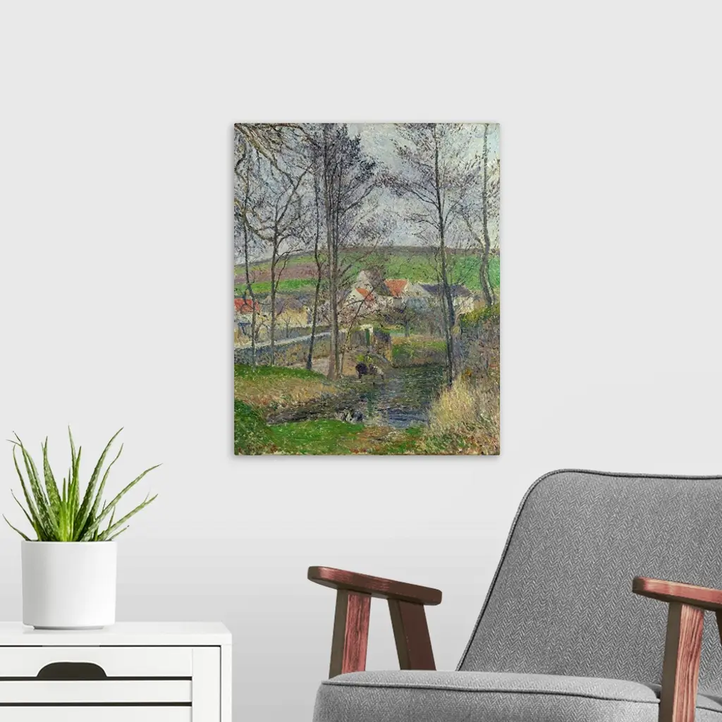 Pissarro, the Viosne, 1883. 'The Banks Of the Viosne At Osny In Grey Weather, Winter.' Oil On Canvas, Camille Pissarro, 1883.