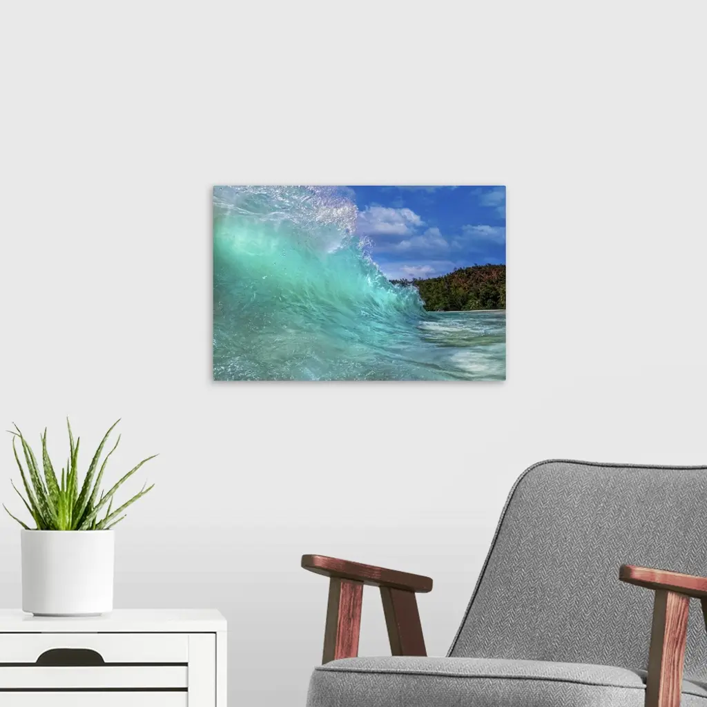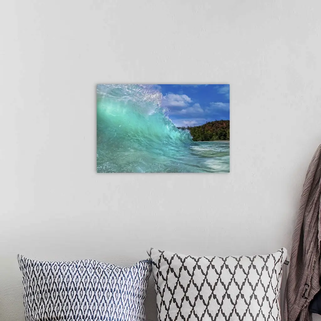 The "Anse Georgette" beach is located on the island of Praslin (Seychelles). It is a heavenly place where the white sand is fine and the color of the sea is turquoise.