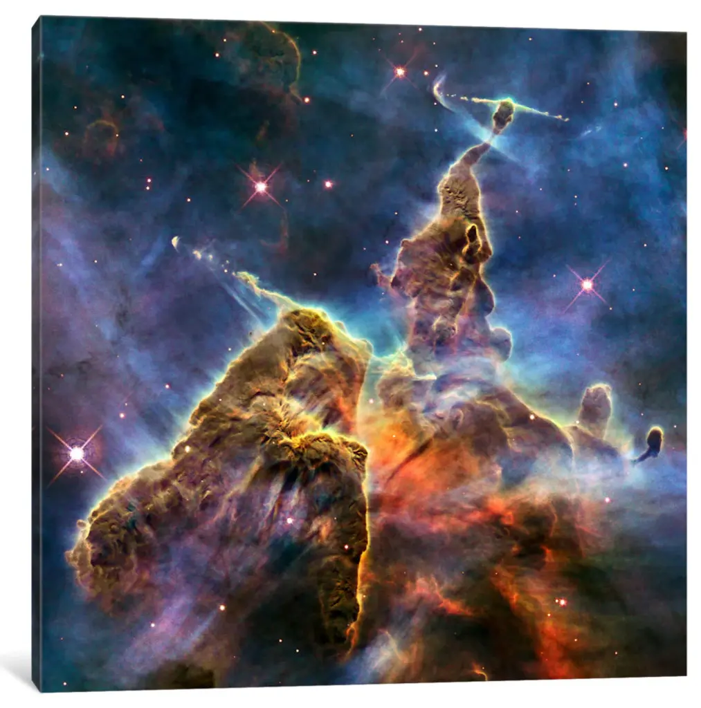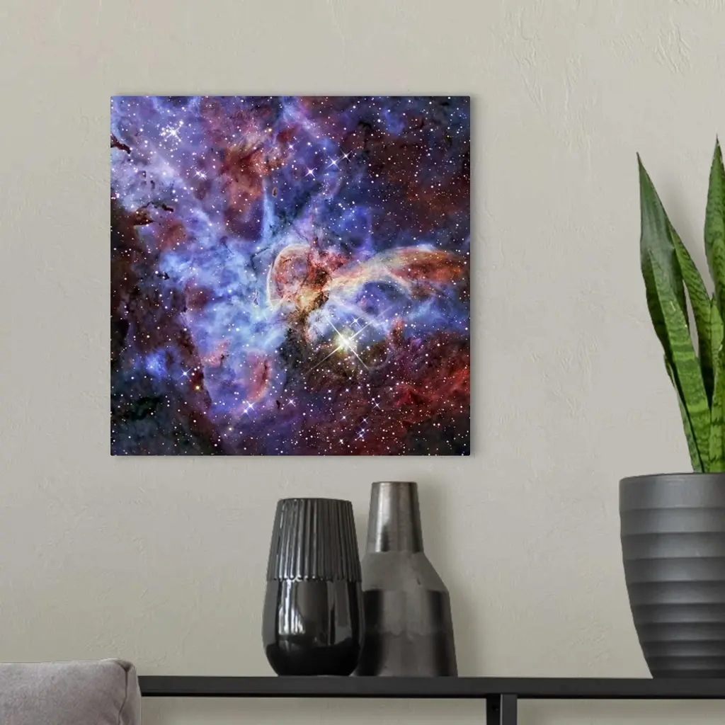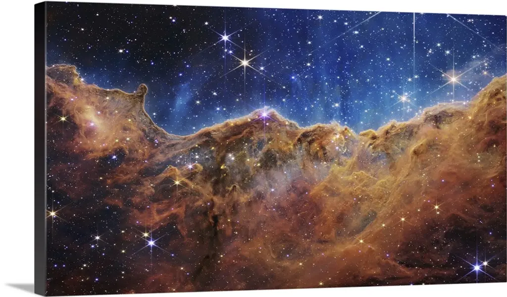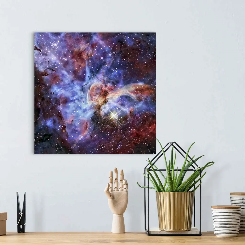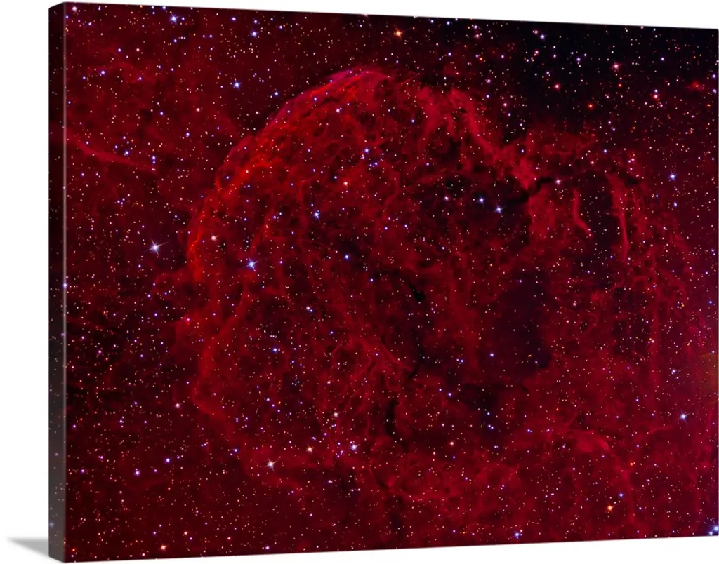 Photograph of interstellar cloud of dust, hydrogen, helium, and other gases with stars sprinkled about.