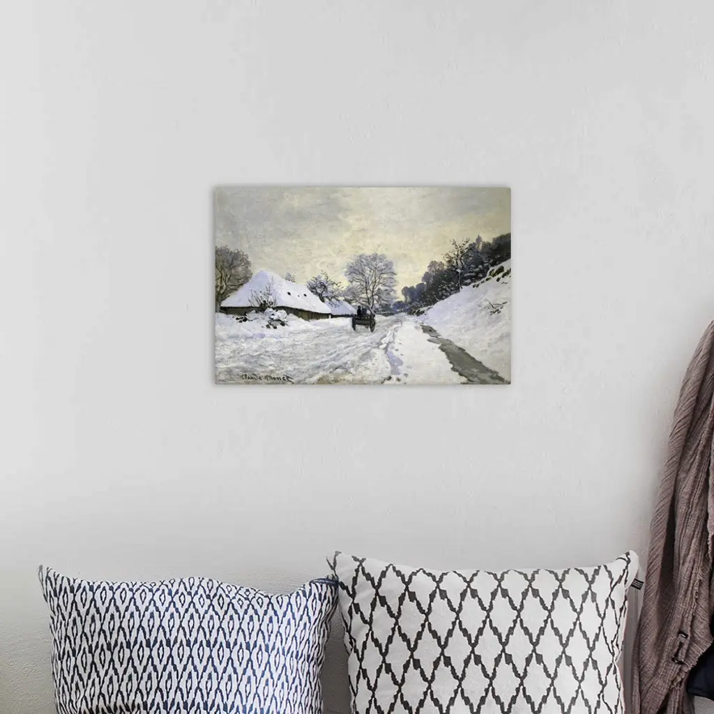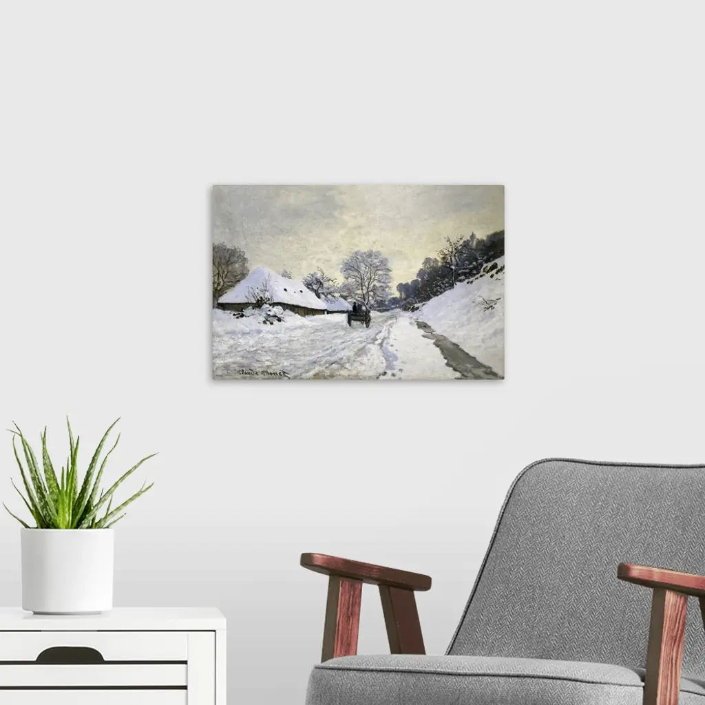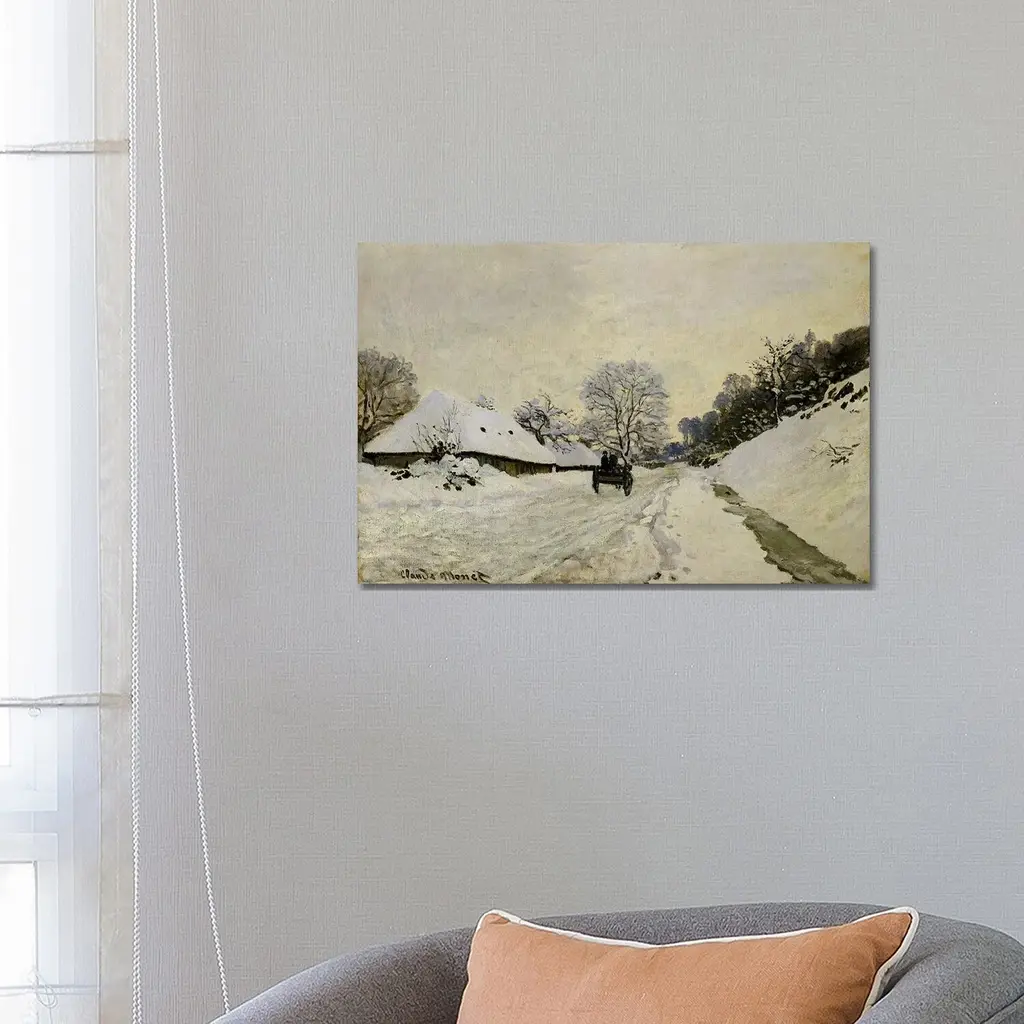 MONET, Claude (1840-1926). The Cart, or Road under Snow at Honfleur. 1867. With Saint-Simeon's farm. Impressionism. Oil on canvas. FRANCE. Paris. Musee d'Orsay (Orsay Museum). -