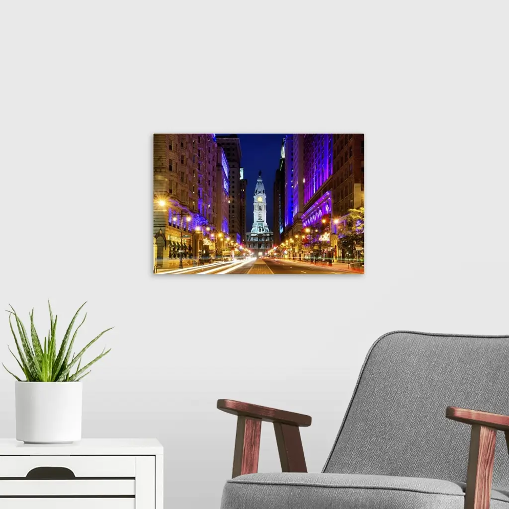 The City Hall And Avenue Of The Arts By Night, Philadelphia